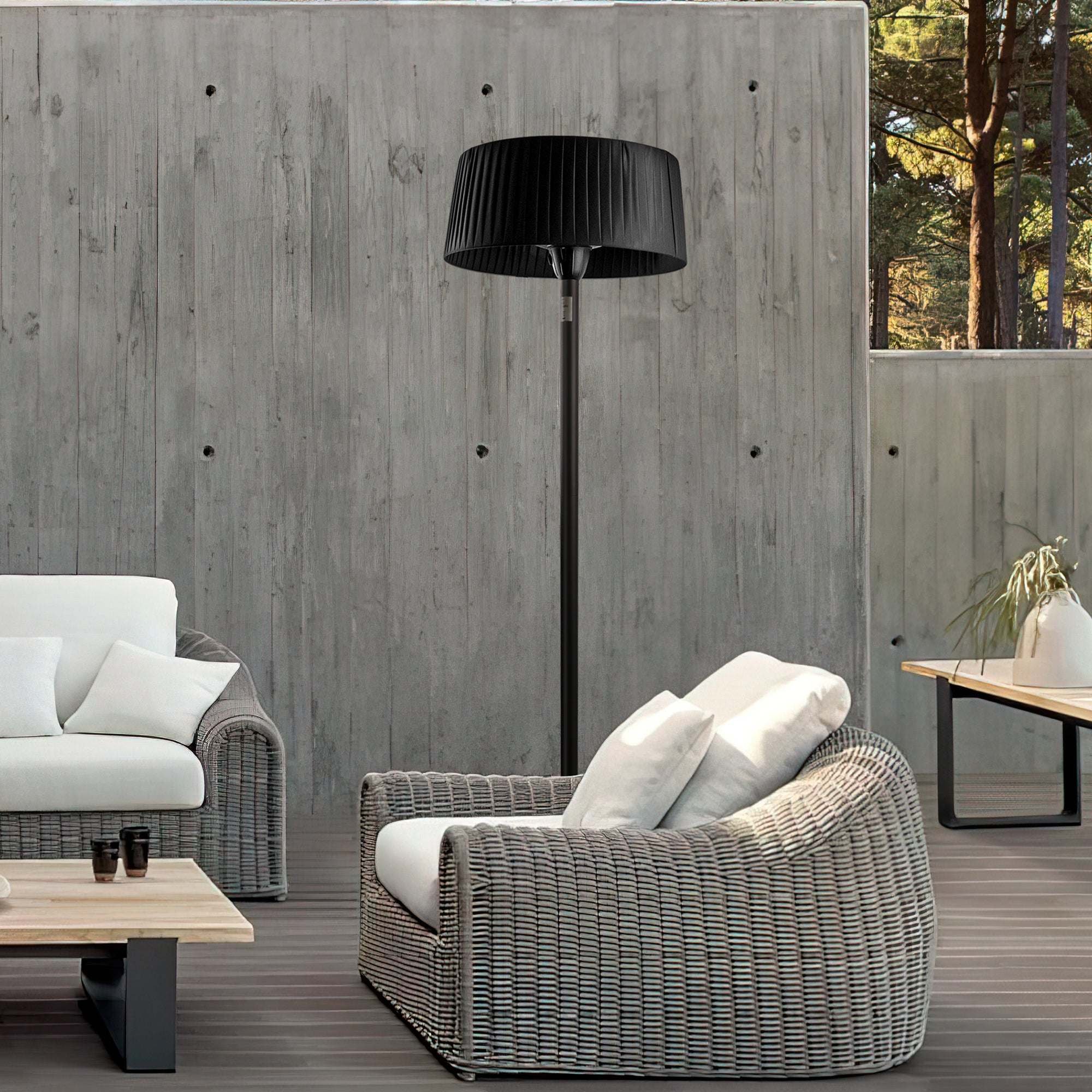 Perfect for creating a warm and toasty environment both indoors and out; this sleek floor lamp provides steady; comfortable heating and ambient light without the need for an open flame or any complicated set up. Enjoy your patio; deck; and outdoor seating areas late into the night; all year long; then bring it inside to warm up your living room or dining room without the need to heat the whole house. The extra-long power cord makes it convenient to plug in and place wherever you need it to heat areas up to 323 square feet. And unlike traditional space heaters; this sophisticated steel and aluminum design hides in plain sight to blend beautifully with any contemporary decor.