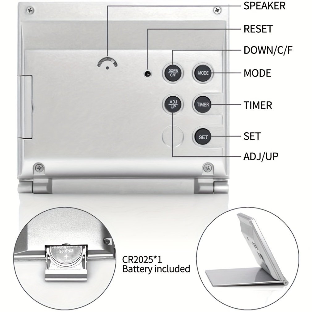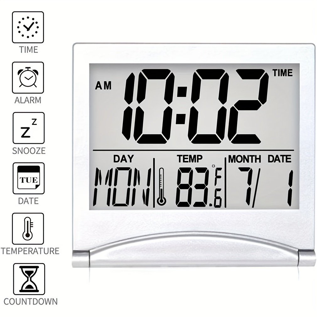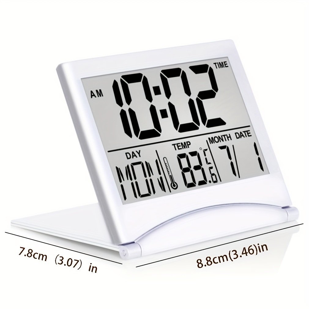 Home > 1pc, Foldable Digital Alarm Clock with Calendar, Temperature, and Battery Operation - Perfect for Bedroom, Living Room, and Office