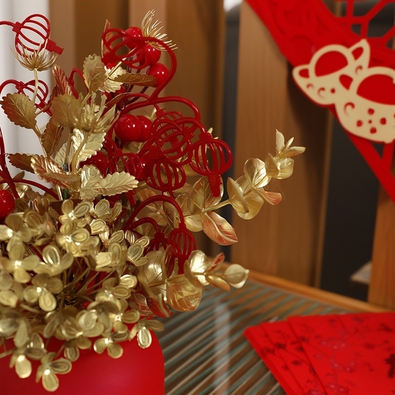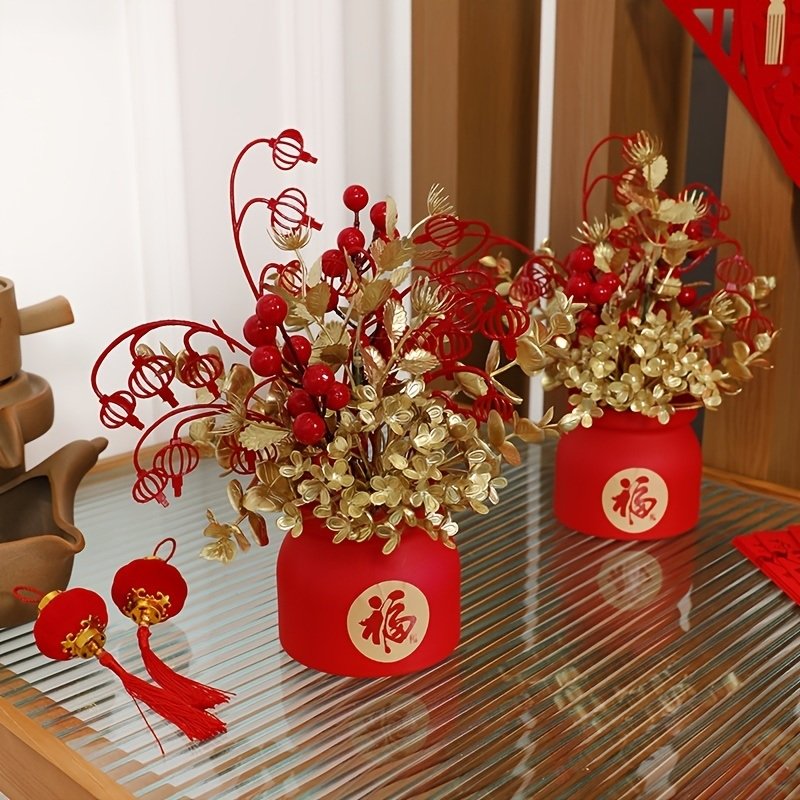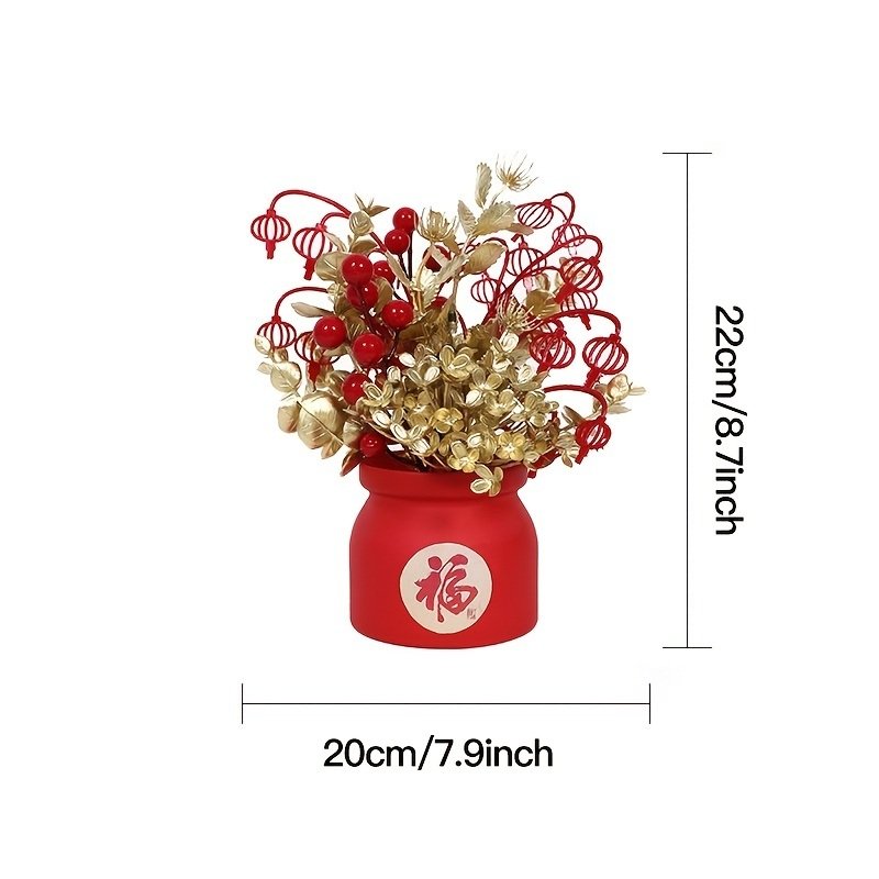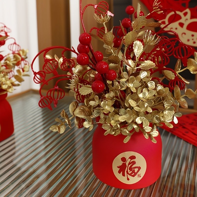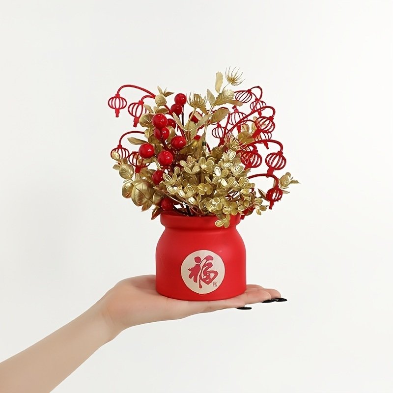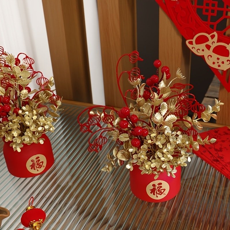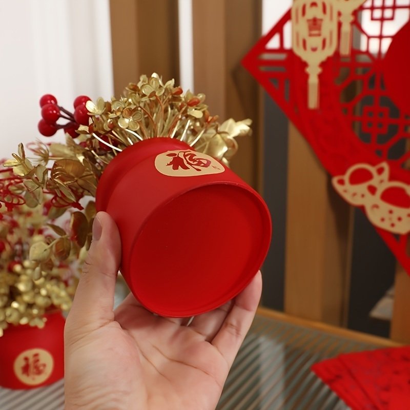 1pc New Year Spring Festival Pots; Artificial Flowers Plants Festival Pots For New Year Spring Festival Home Restaurant Tabletop Festival Festival Par
