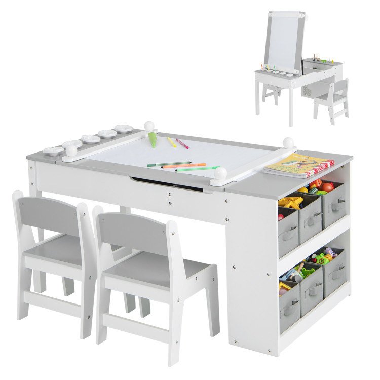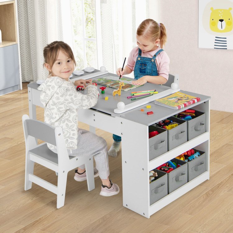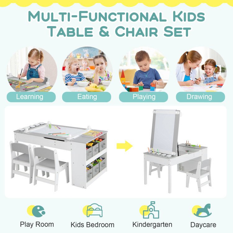 1.2-in-1 Design: You can lift the tabletop to reveal a built-in easel and lower the easel to transform it back into a kids table. This multi-functional kid's table and chair set is suitable for learning, eating, playing and drawing, which is a great addition for the playroom, kids bedroom, kindergarten, daycare, etc.