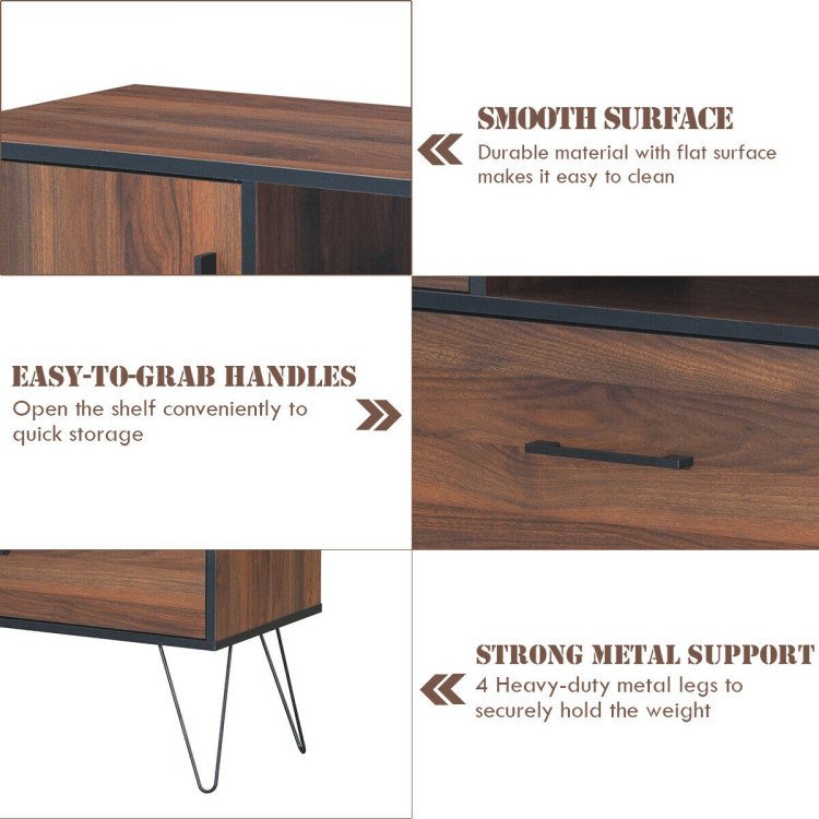 3-Tier Wood Storage Cabinet with Drawers and 4 Metal Legs