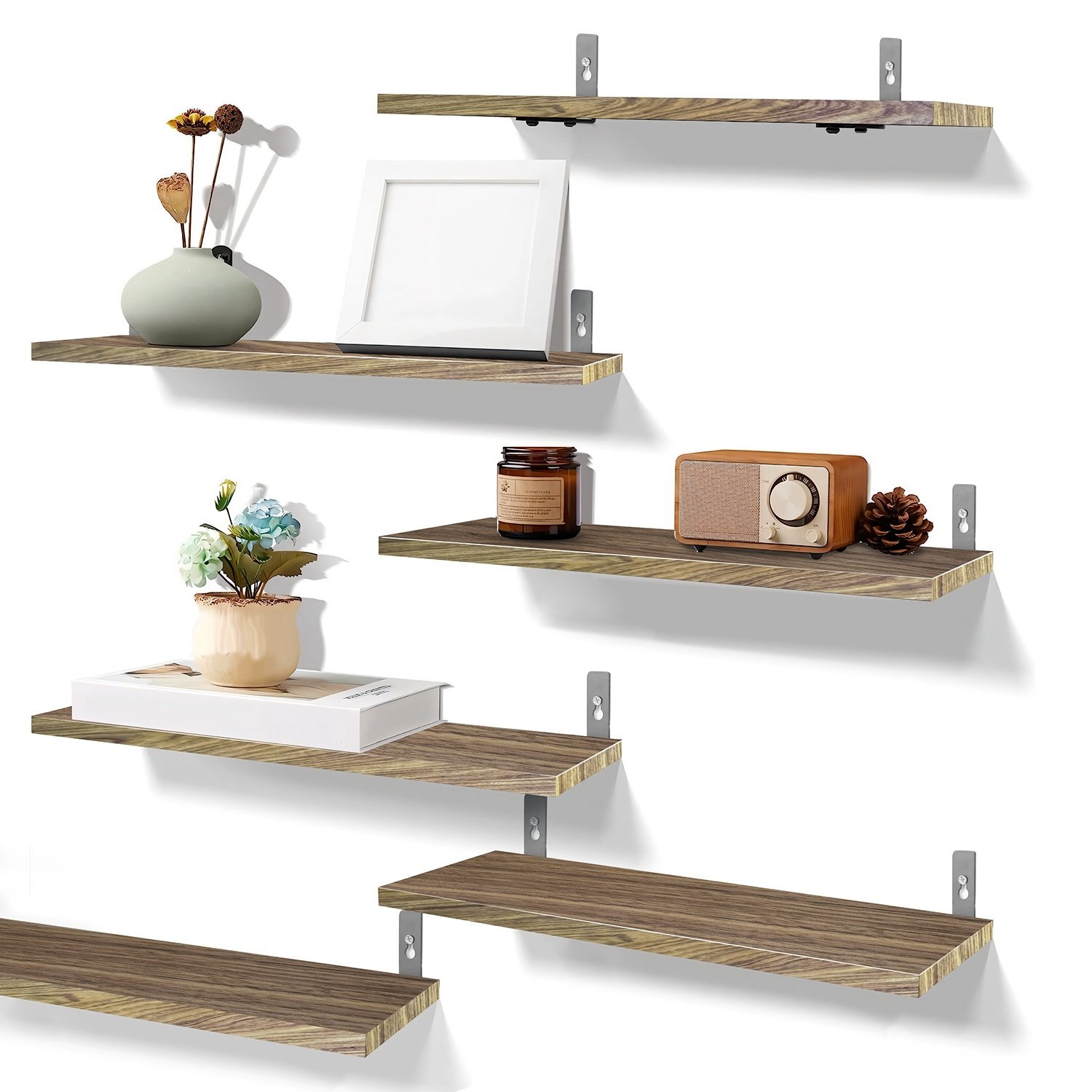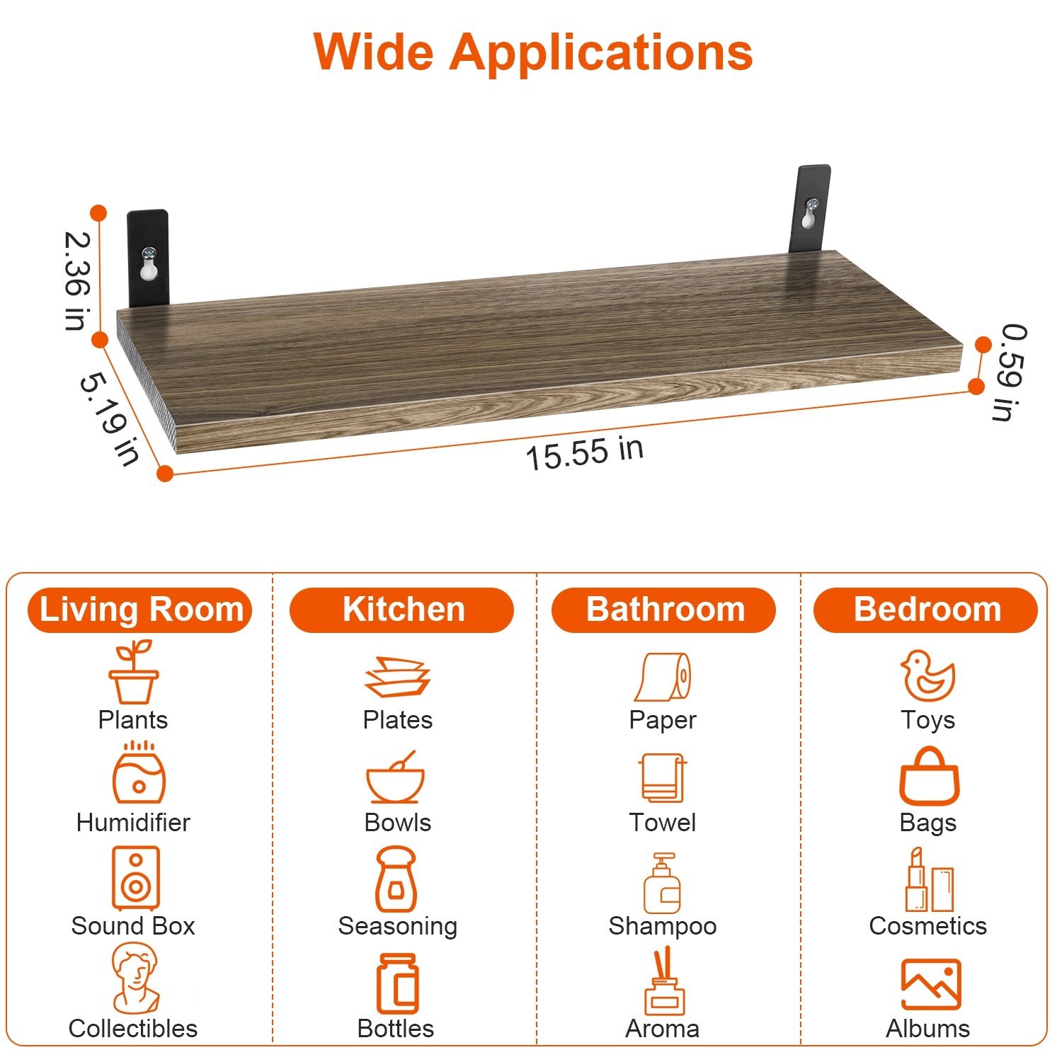 *Natural Wood*:Made of natural paulownia with wooden texture and dark brown color,these floating wall shelves has light weight,smooth surface and modern appearance. Able to match all kinds of interior style,like modern decor,rustic decor,farmhouse decor,and bohemia room decor.