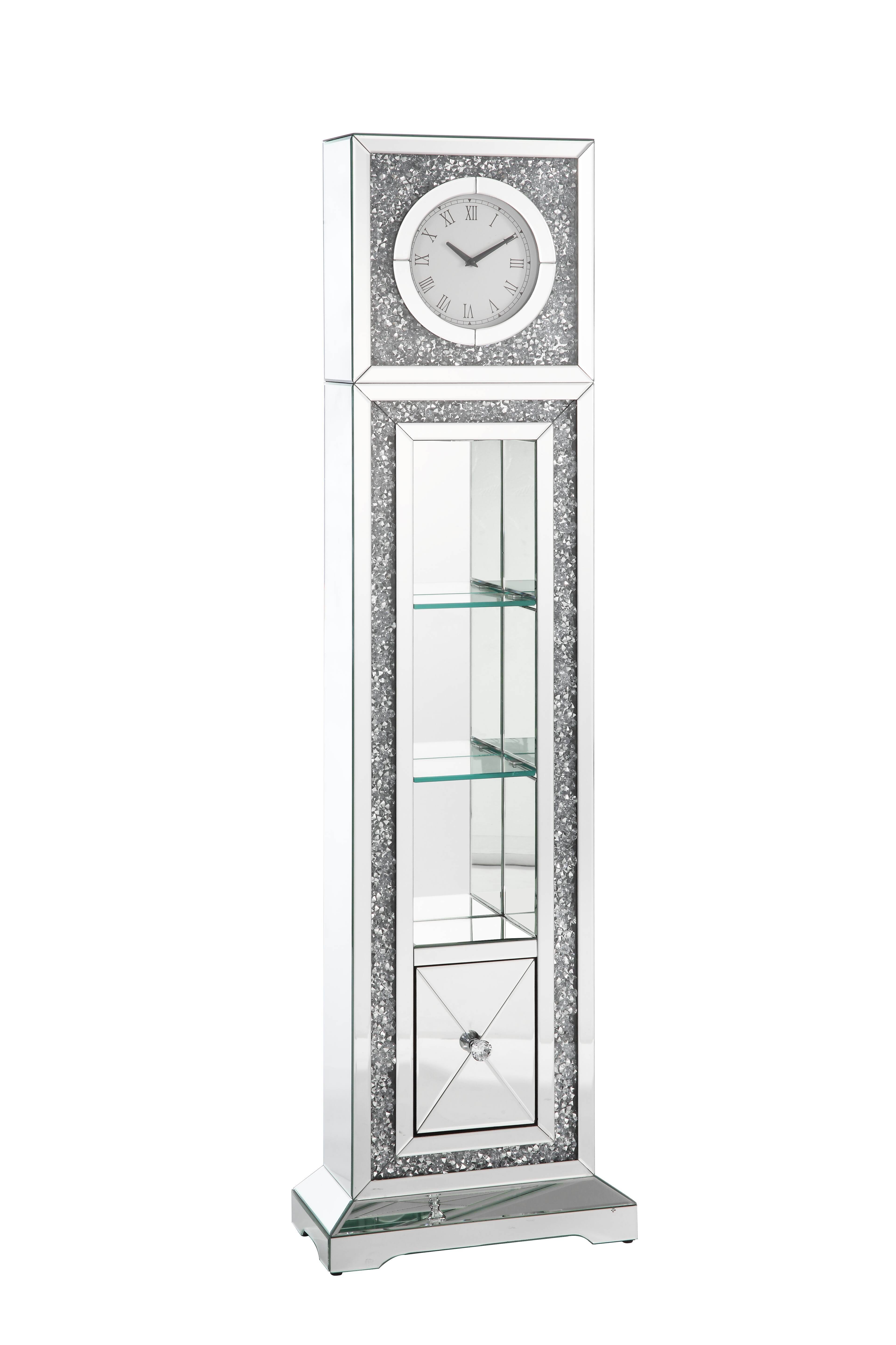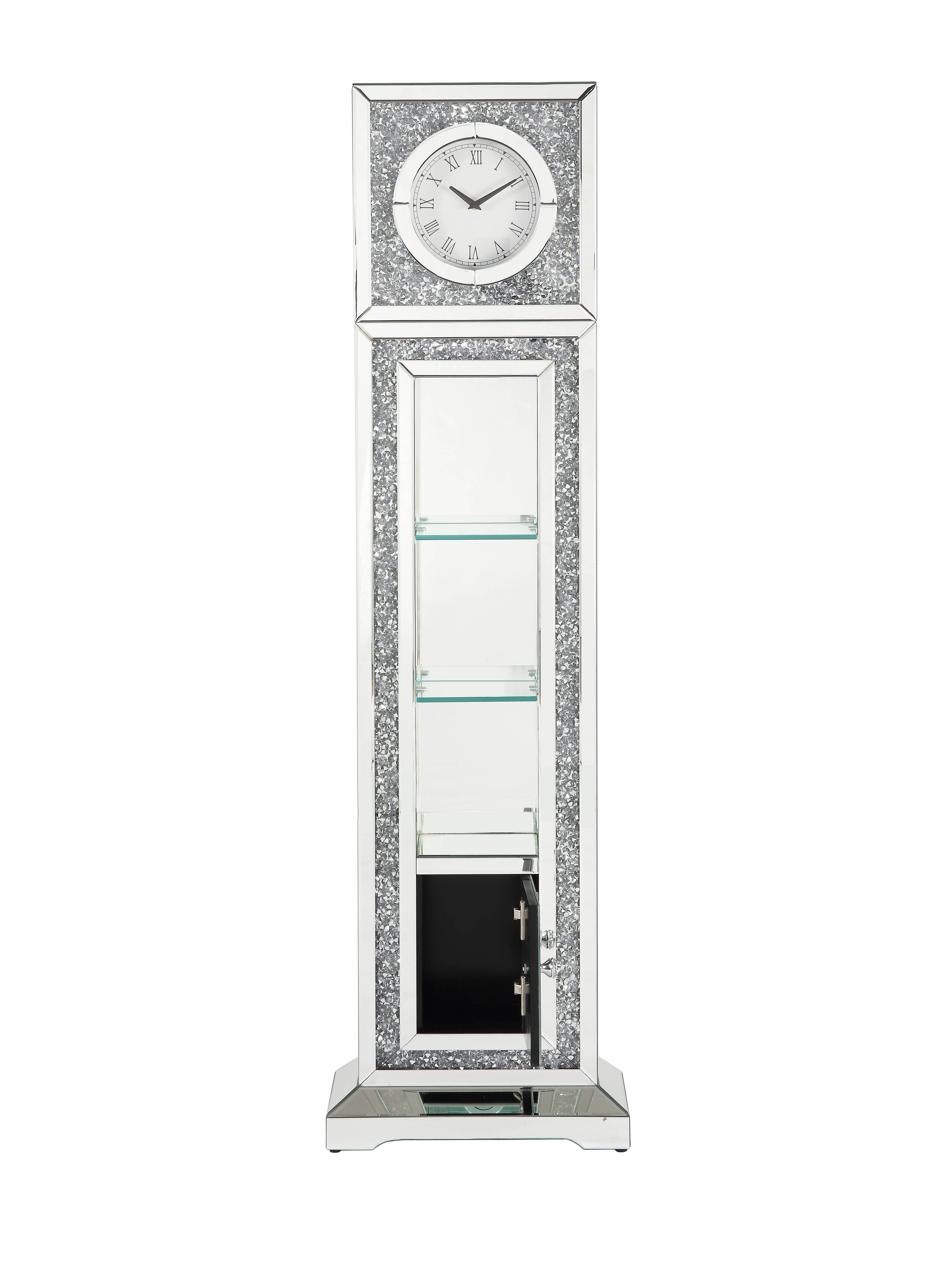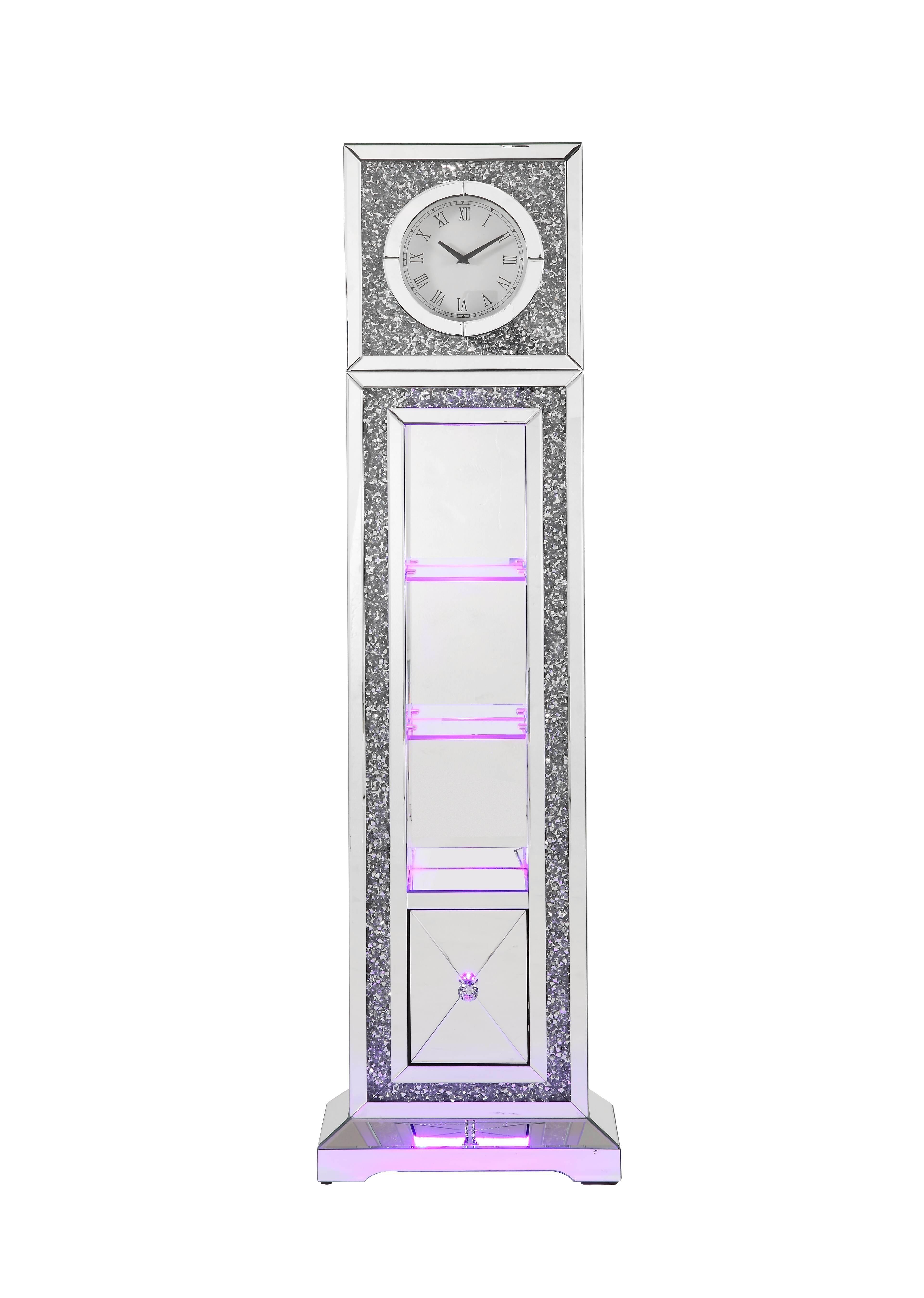 ACME Noralie GRANDFATHER CLOCK W/LED Mirrored & Faux Diamonds AC00354