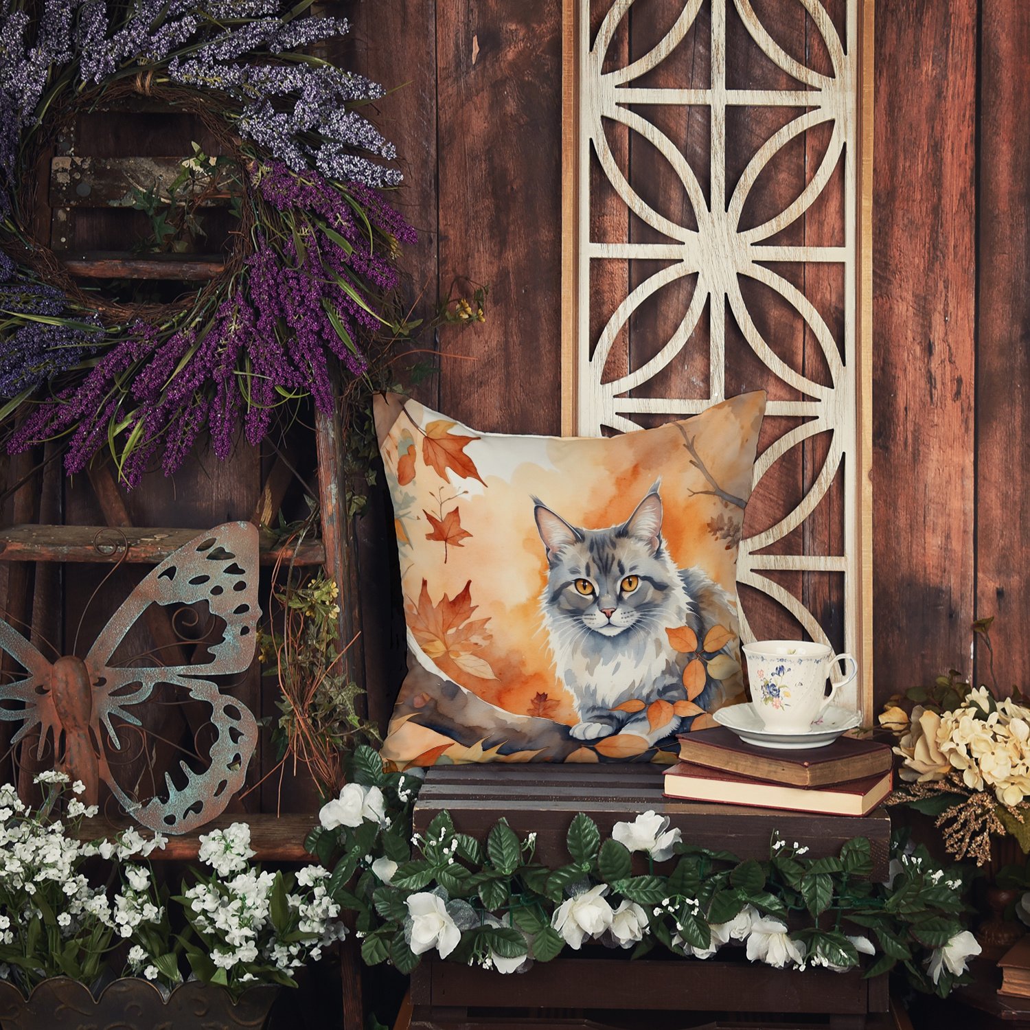 Home > Australian Mist Cat in Fall Leaves Throw Pillow Machine Washable, Indoor Outdoor Decorative Pillow for Couch, Bed or Patio, 18Hx18W