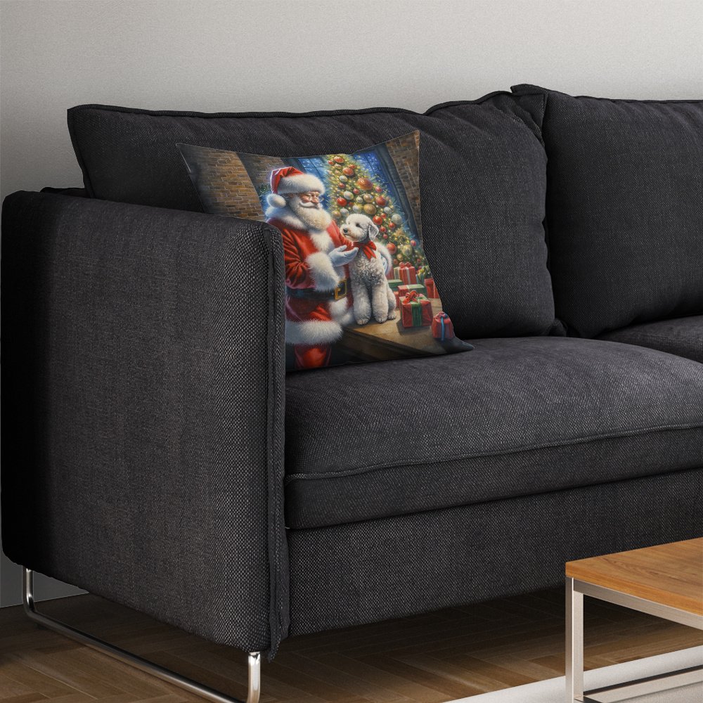 Home > Bedlington Terrier and Santa Claus Throw Pillow Machine Washable, Indoor Outdoor Decorative Pillow for Couch, Bed or Patio, 14Hx14W