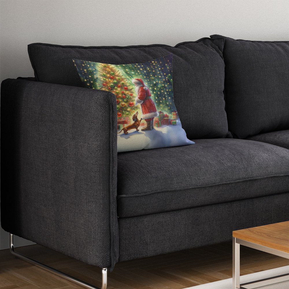 Home > Dachshund and Santa Claus Throw Pillow Machine Washable, Indoor Outdoor Decorative Pillow for Couch, Bed or Patio, 14Hx14W