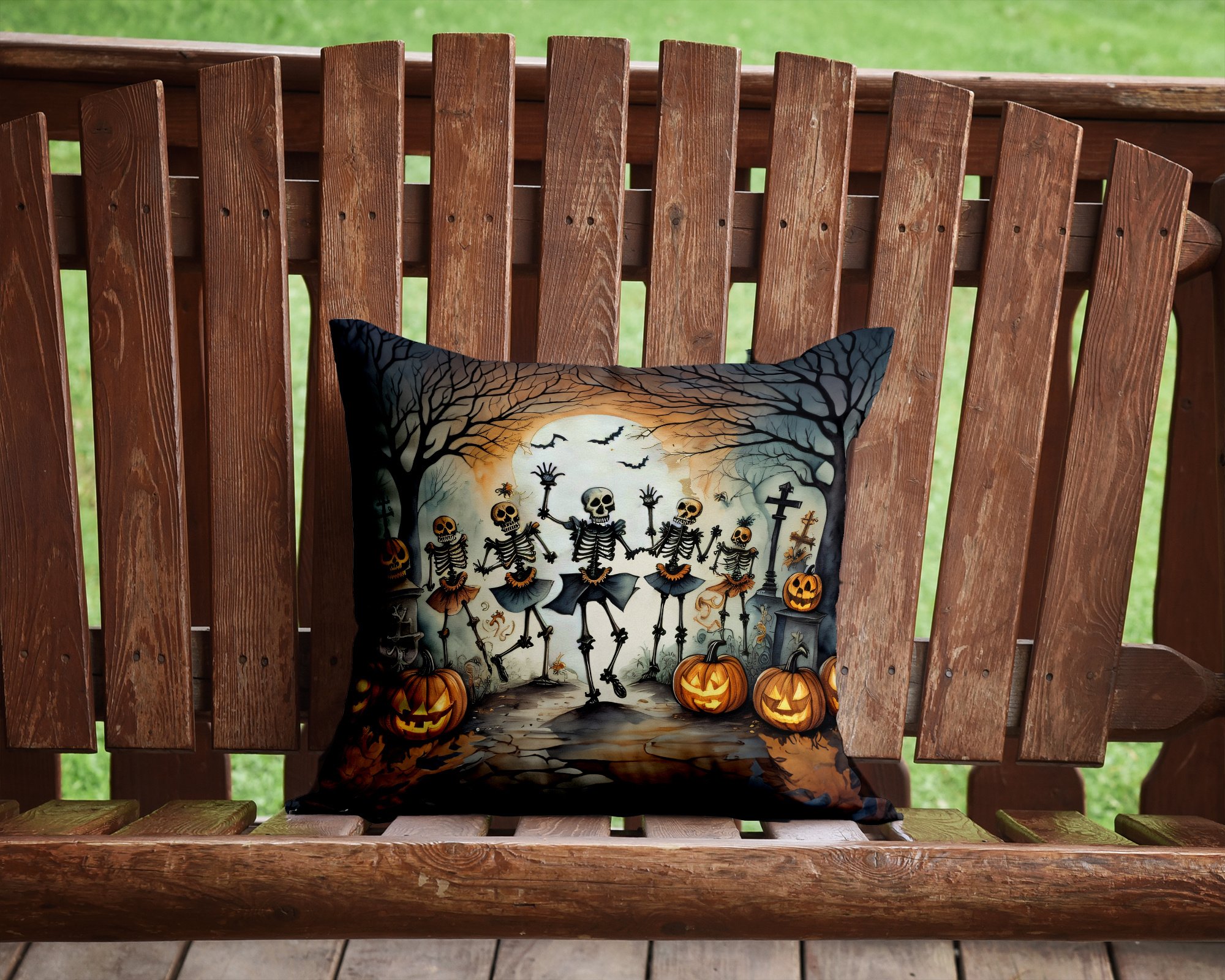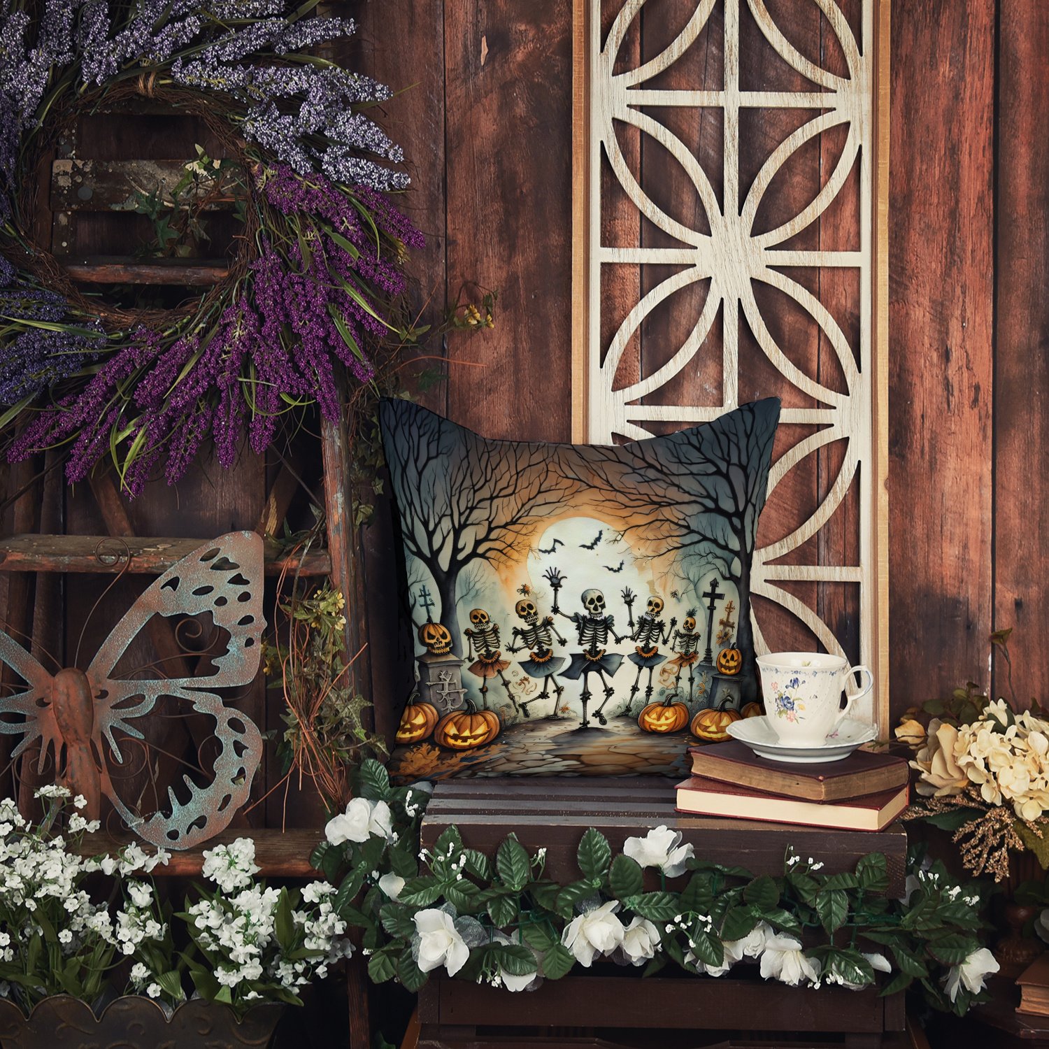 Dancing Skeletons Spooky Halloween Throw Pillow Machine Washable, Indoor Outdoor Decorative Pillow for Couch, Bed or Patio, 14Hx14W