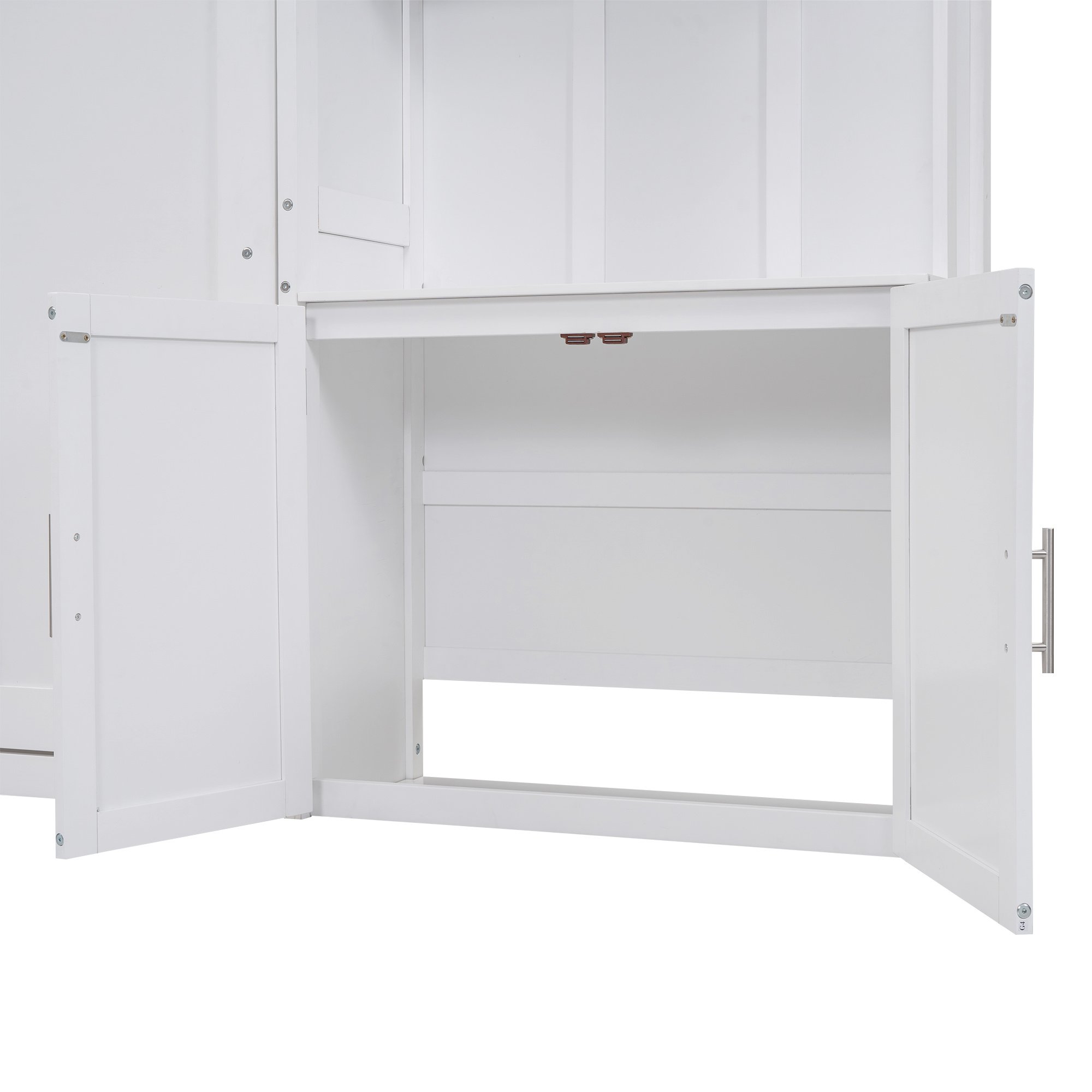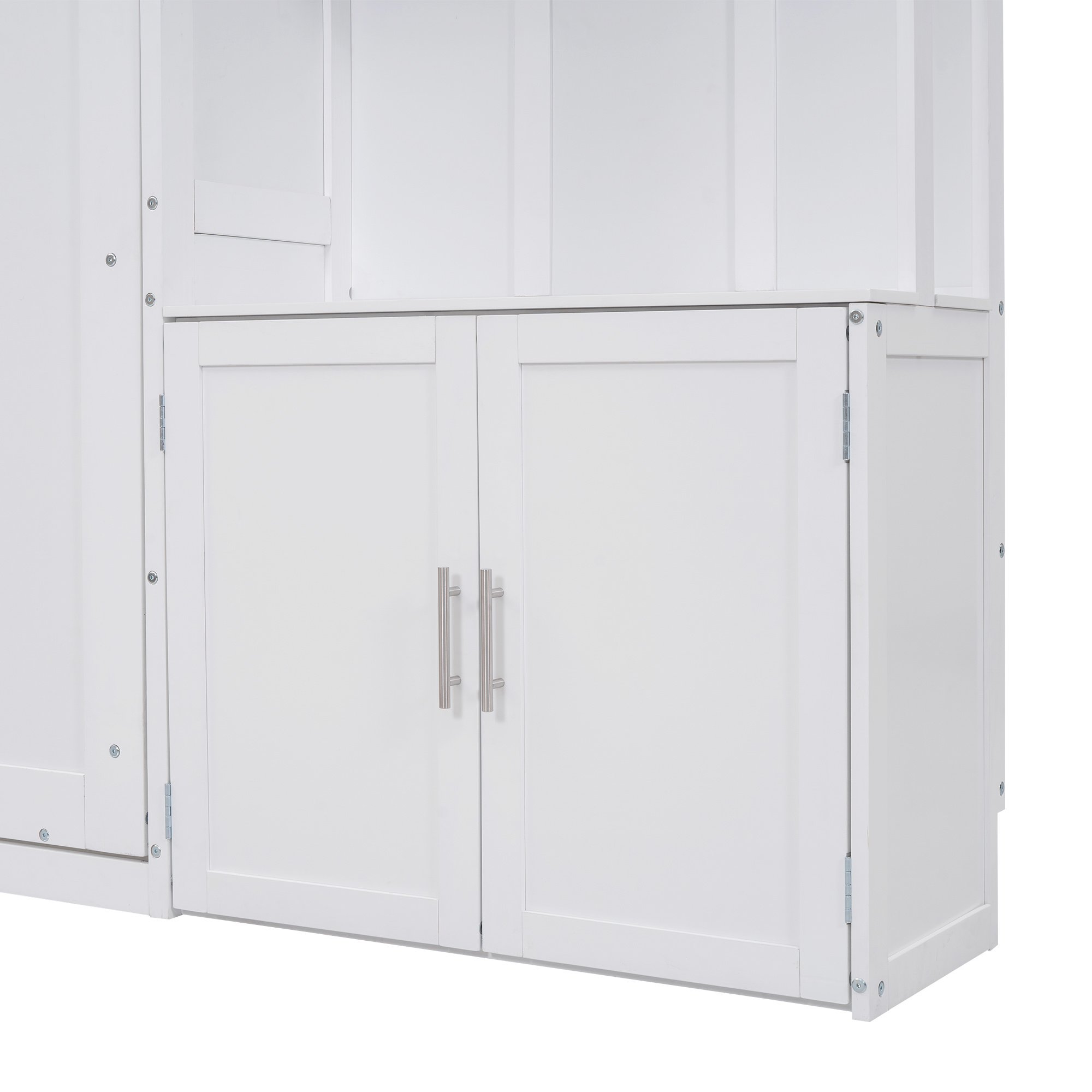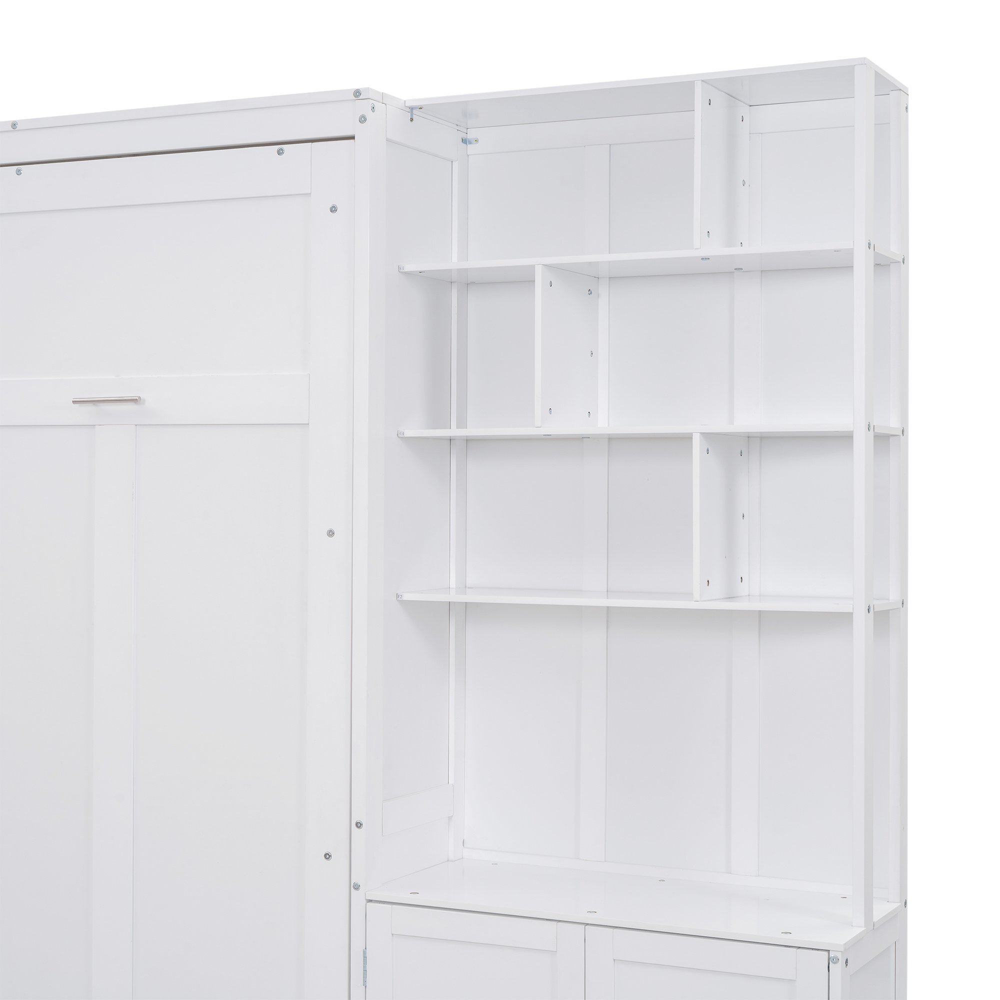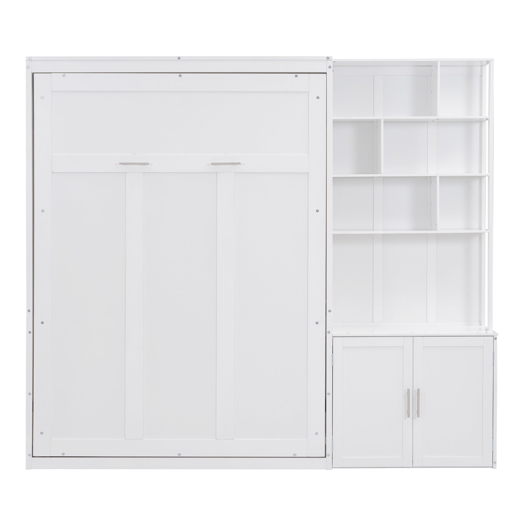Full Size Murphy Bed with Multiple Storage Shelves and A Cabinet, White