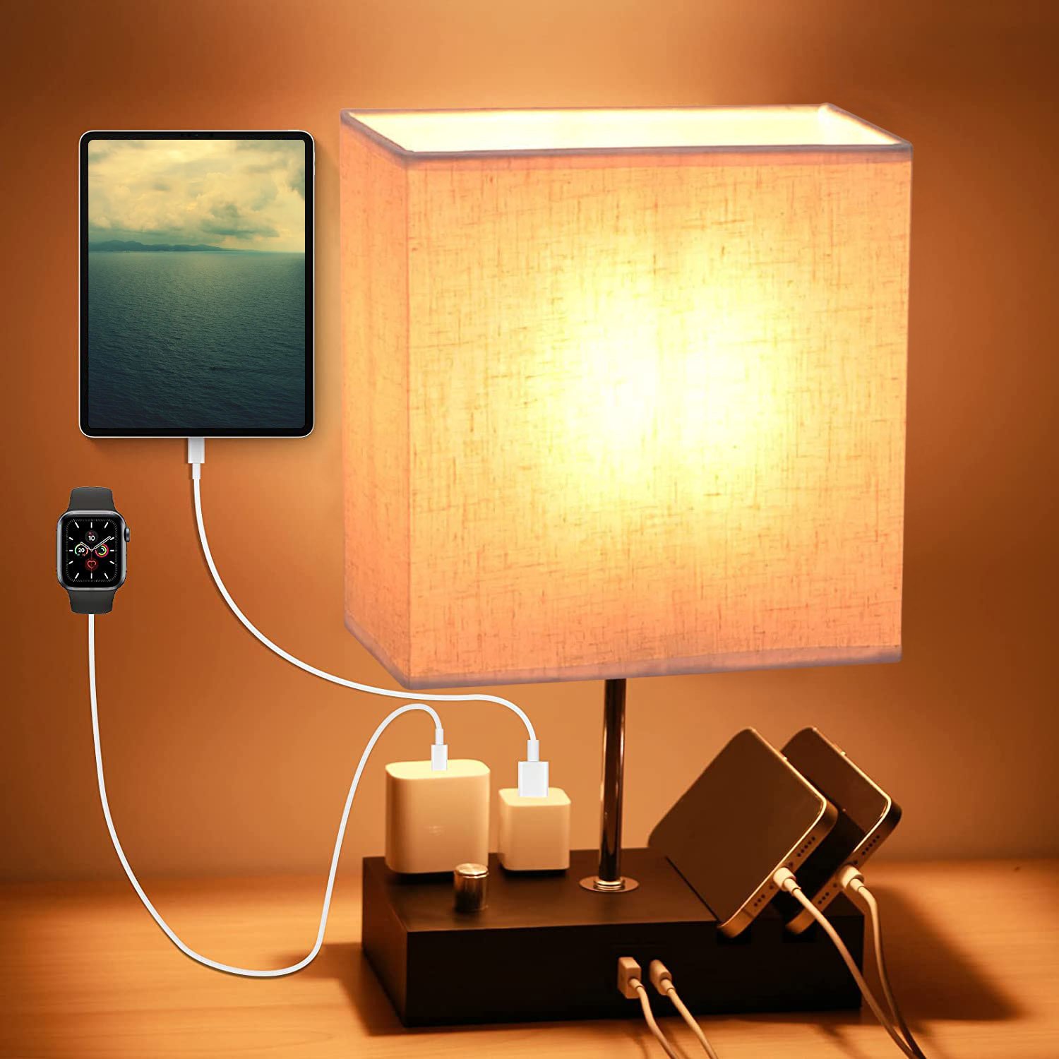 *Dual USB Ports & 2 AC Outlets*:Always short of charging ports while reading or working in bed? This bedside lamp with dual USB ports & phone stands allow you to charge phones or tablets more conveniently. Besides; you can also charge other electronic devices with 2 AC outlets.