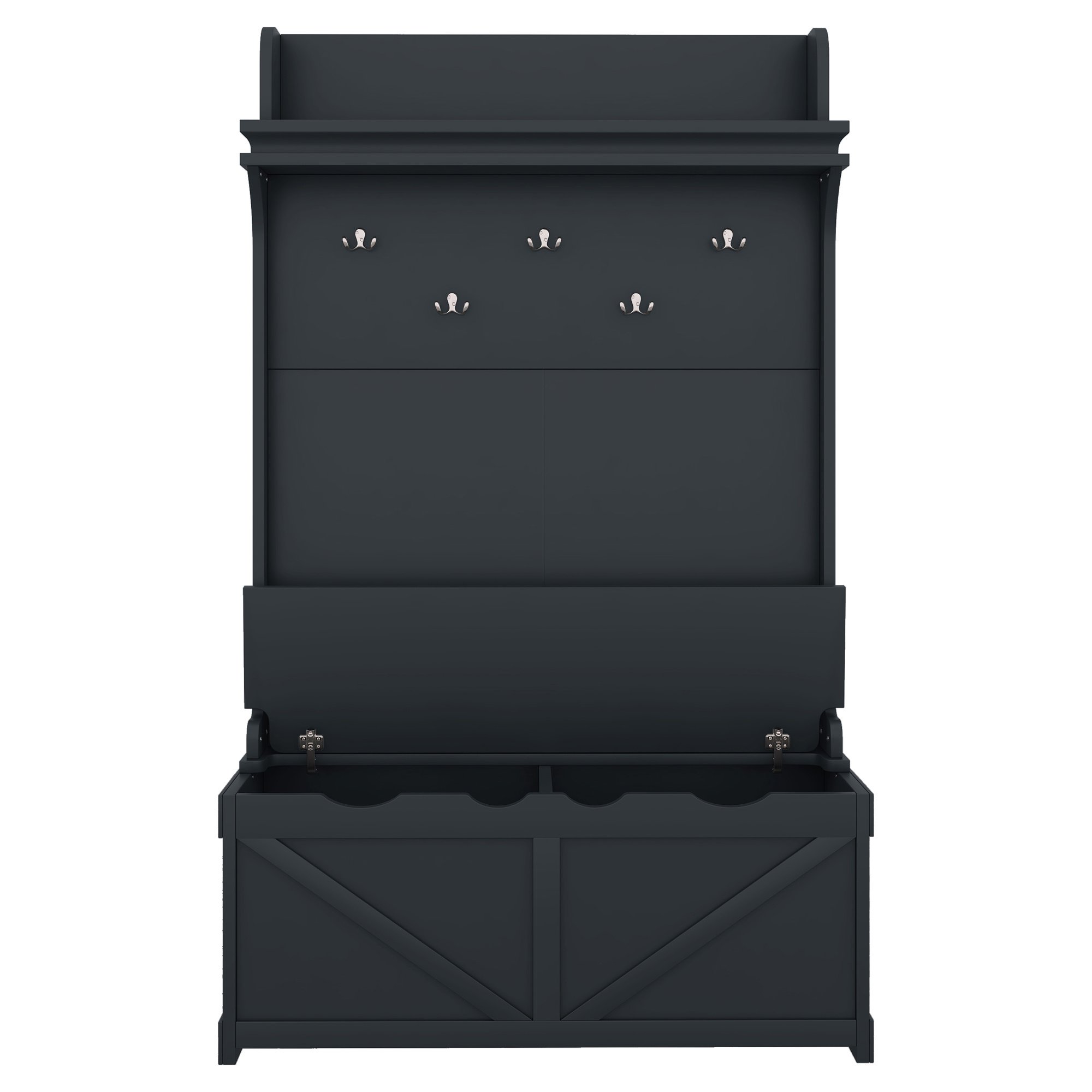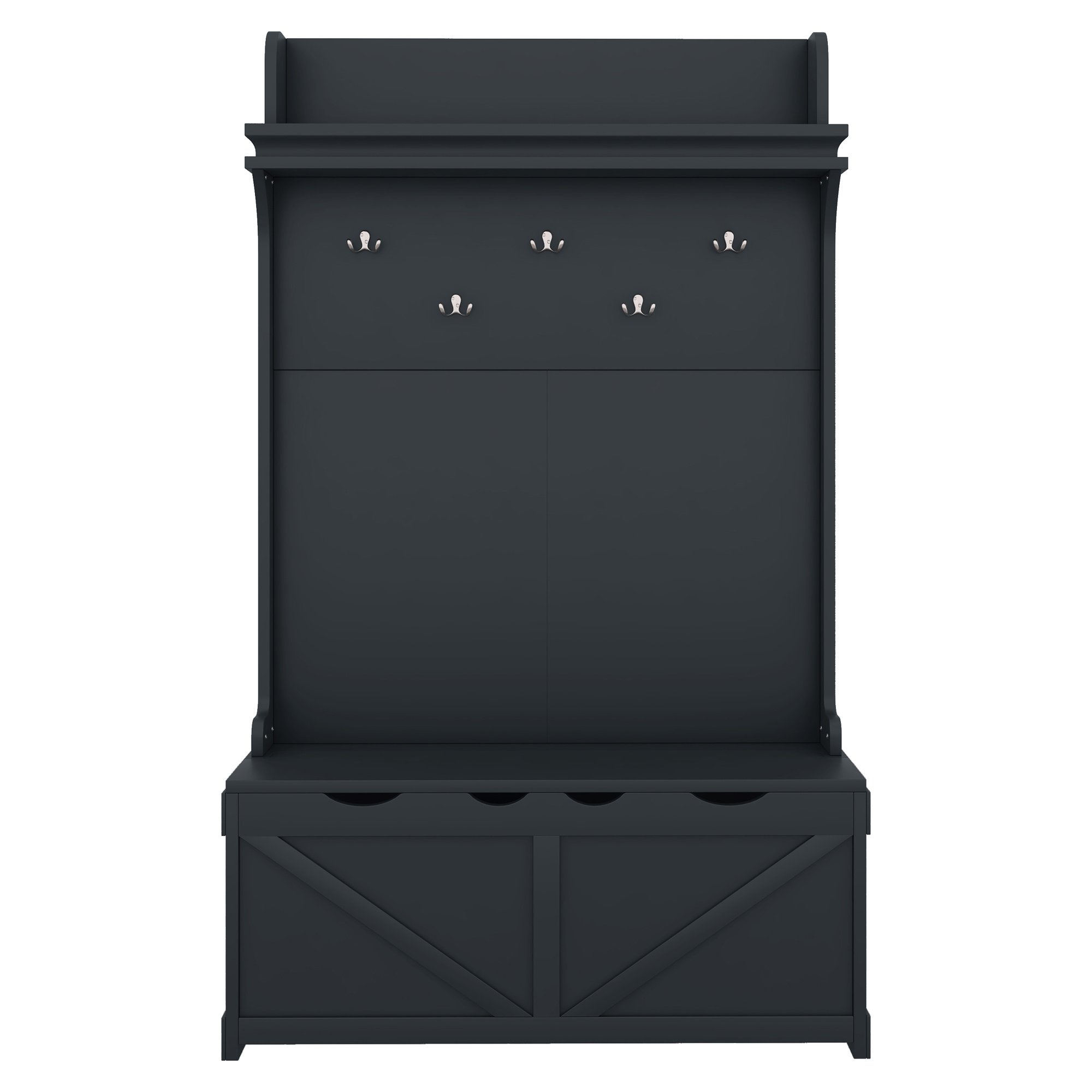 Organize and decorate your entryway with this hall tree, which will provide plenty of storage space for your entryway items. Featuring a stylish design, this hall tree is suitable for all décor and will add elegance to your home.