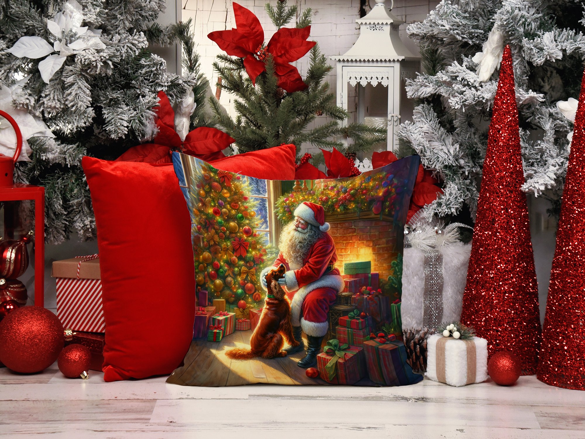 Home > Irish Setter and Santa Claus Throw Pillow Machine Washable, Indoor Outdoor Decorative Pillow for Couch, Bed or Patio, 14Hx14W