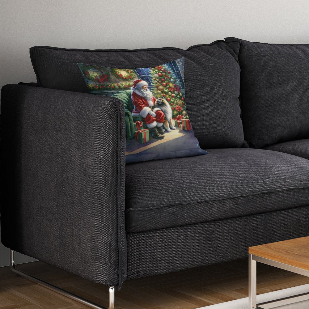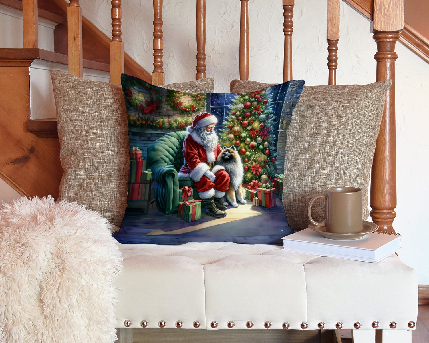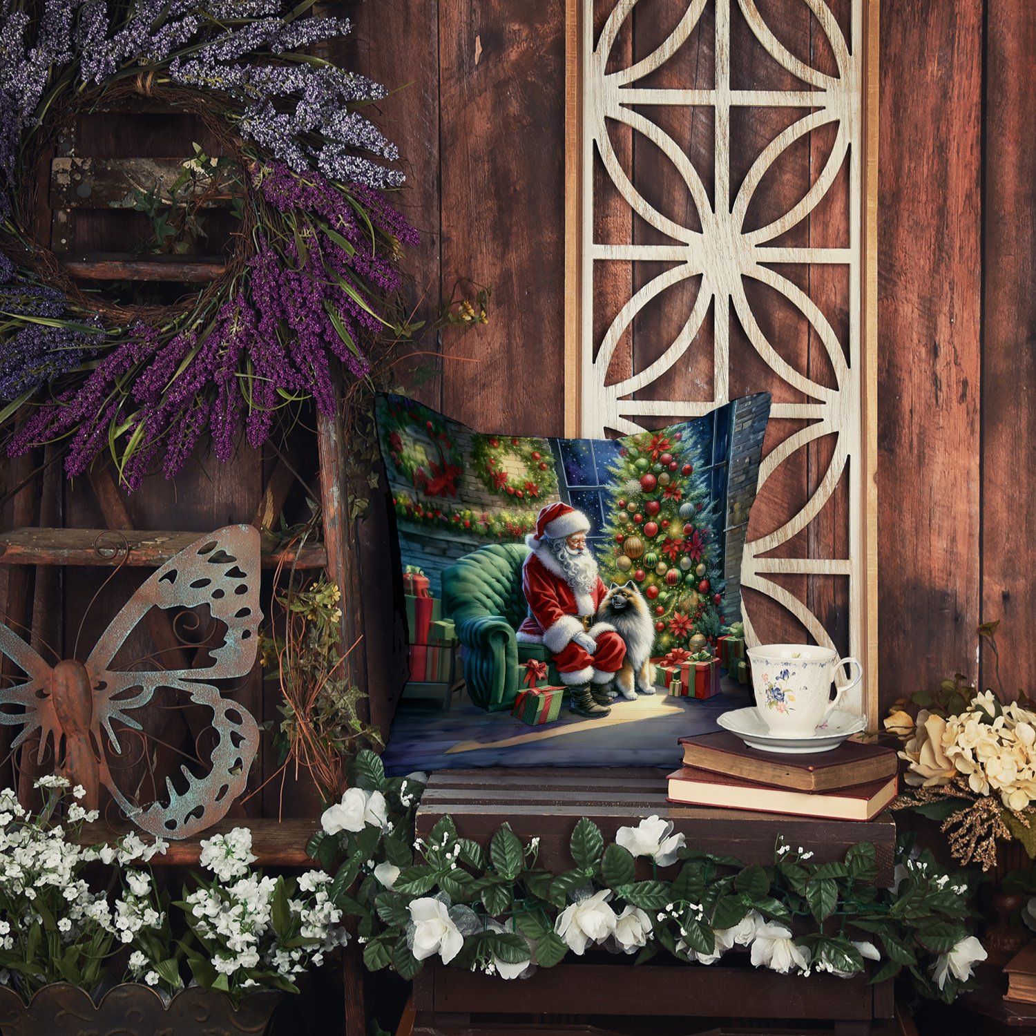 Home > Keeshond and Santa Claus Throw Pillow Machine Washable, Indoor Outdoor Decorative Pillow for Couch, Bed or Patio, 14Hx14W