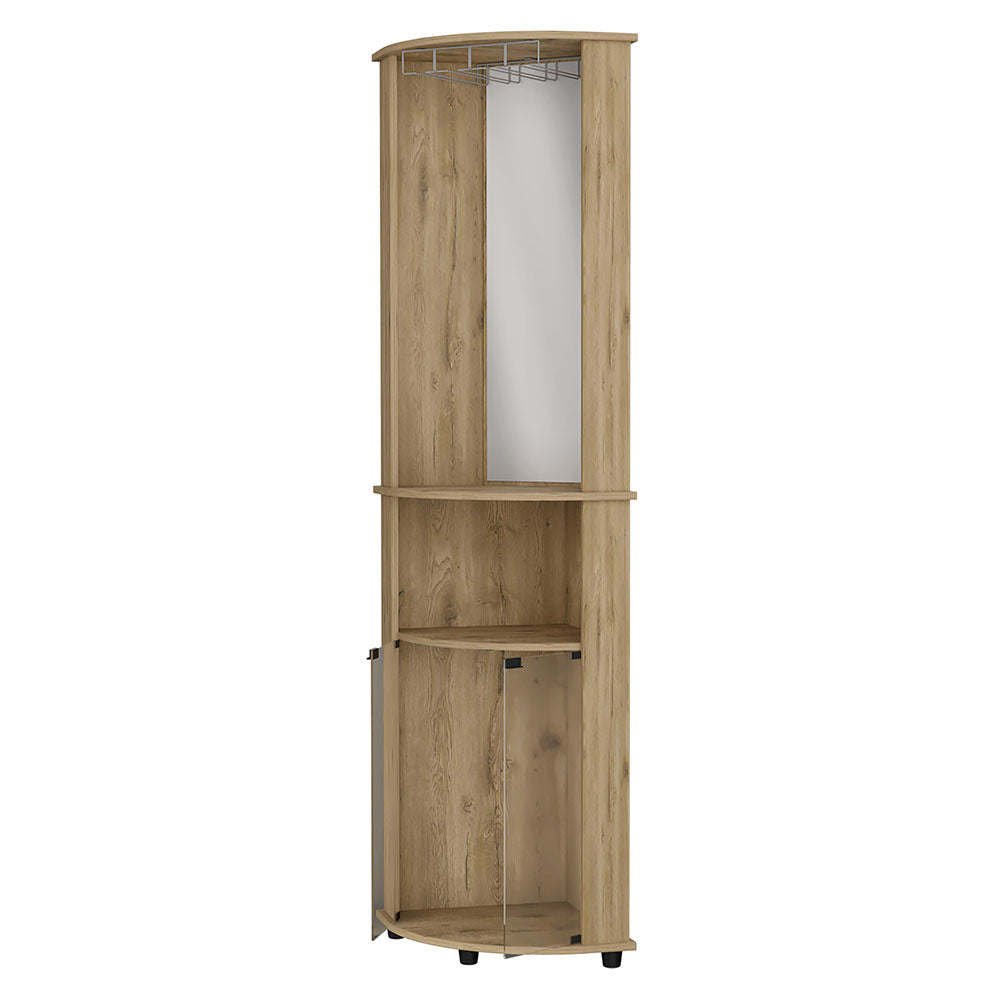 Kempwell 2-Door 2-Shelf Corner Bar Cabinet with Glass Rack Macadamia