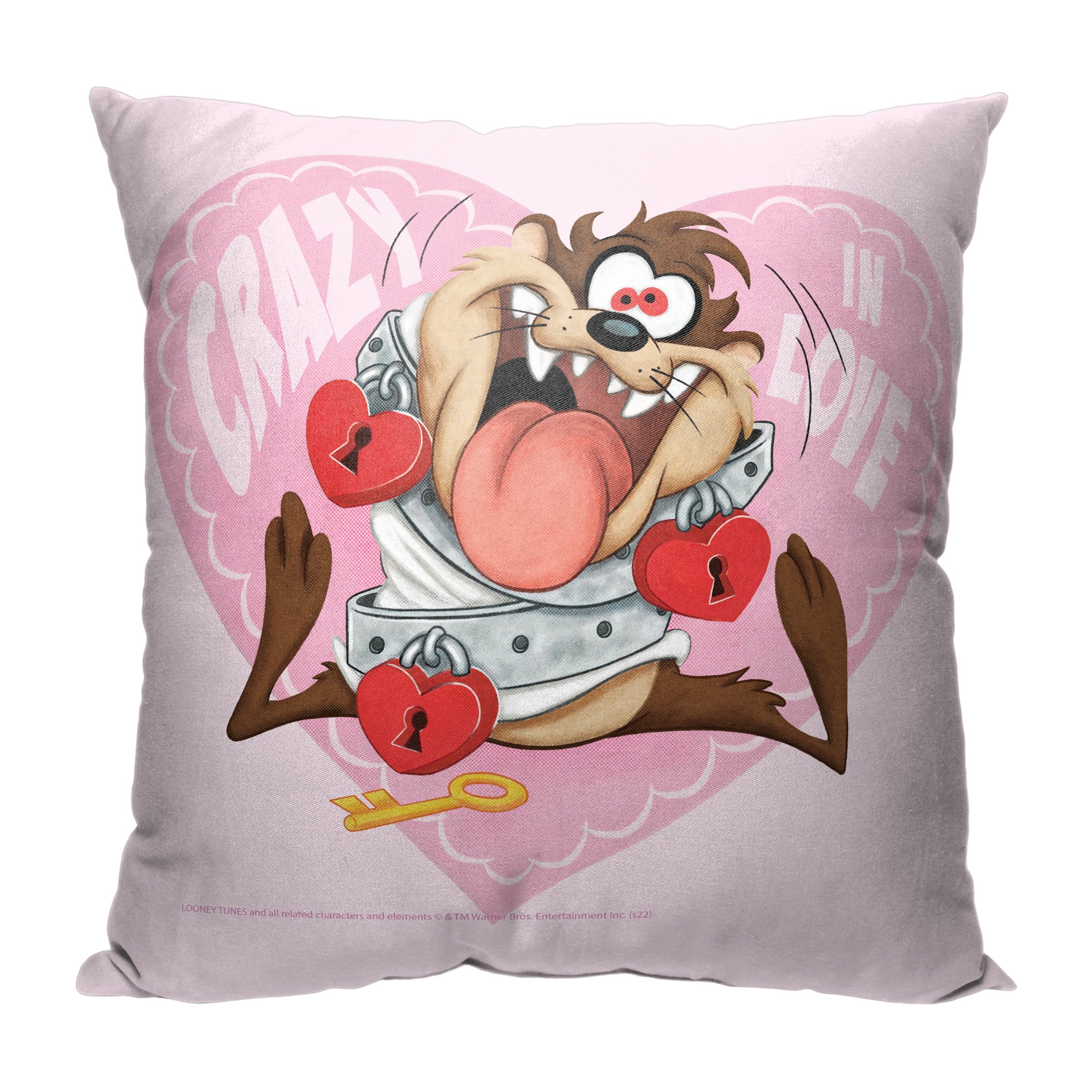 Snuggle up in style with this Warner Bros' Looney Tunes "Crazy In Love " soft and luxurious pillow. Measuring 18"W x 18"L, it's the perfect size to add an extra layer of coziness to your couch, bed, or any area in your home. Made with 100% polyester, this pillow is designed to be incredibly soft and comfortable.
