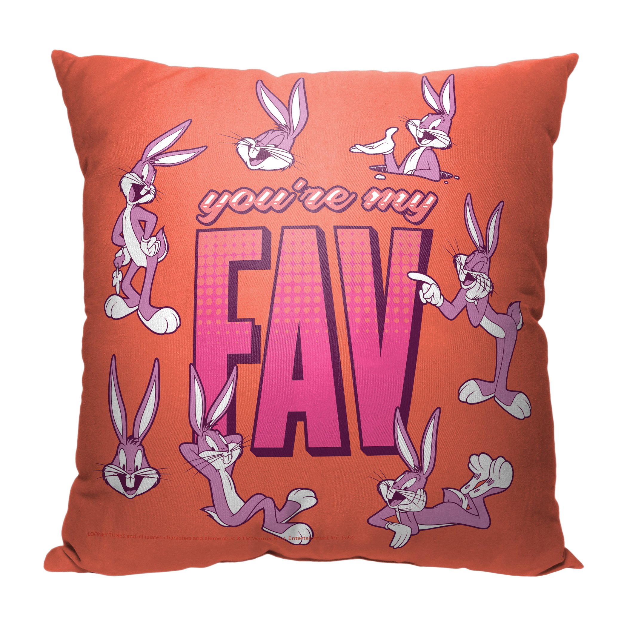 Snuggle up in style with this Warner Bros's Looney Tunes "You're my Fav" soft and luxurious pillow. Measuring 18"W x 18"L, it's the perfect size to add an extra layer of coziness to your couch, bed, or any area in your home. Made with 100% polyester, this pillow is designed to be incredibly soft and comfortable.