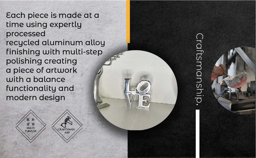 <p>CRAFTSMANSHIP. Each piece is made at a time using expertly processed recycled aluminum alloy, finishing with multi-step polishing creating a piece of artwork with a balance of functionality and modern design.</p>