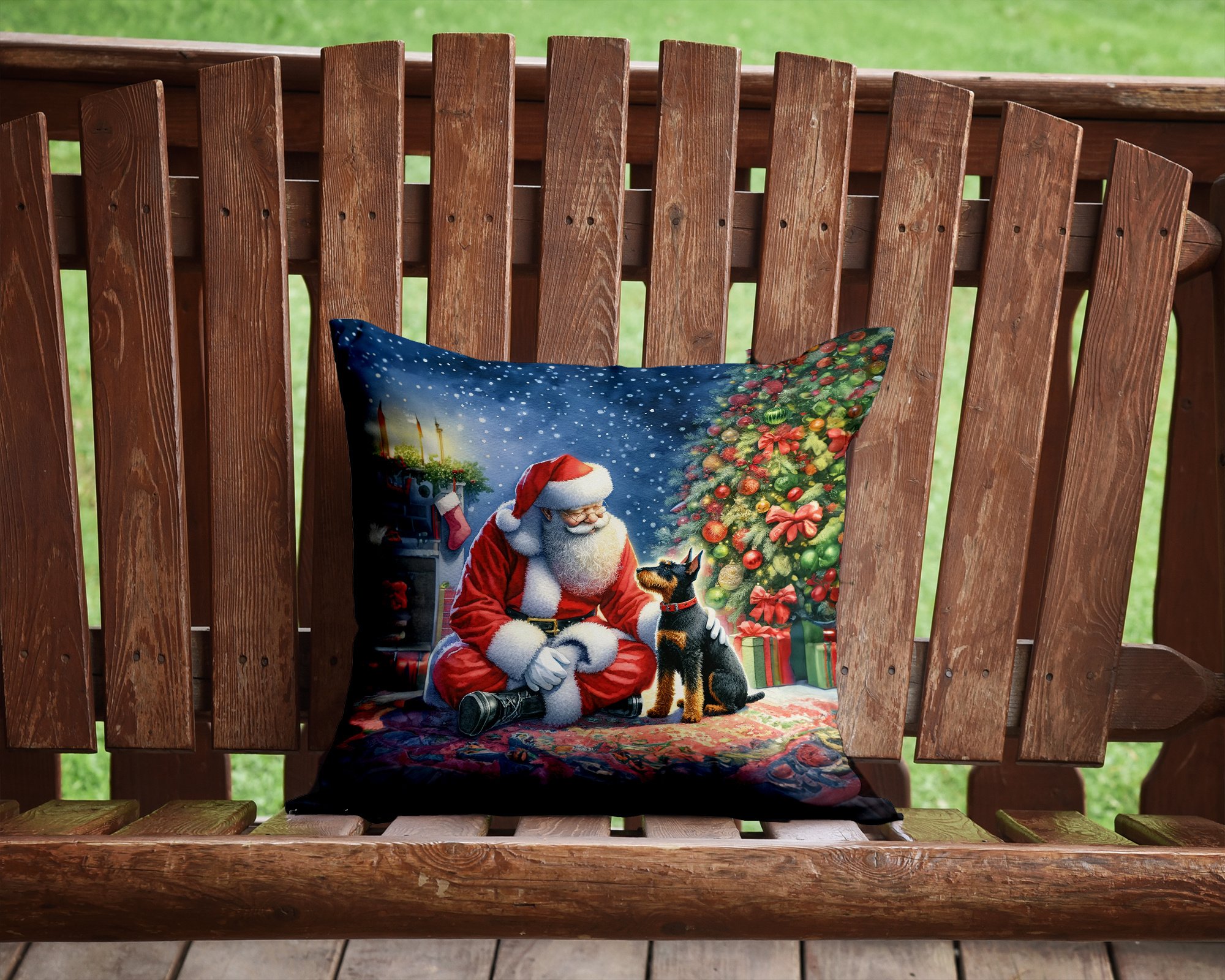 Manchester Terrier and Santa Claus Throw Pillow Machine Washable, Indoor Outdoor Decorative Pillow for Couch, Bed or Patio, 14Hx14W