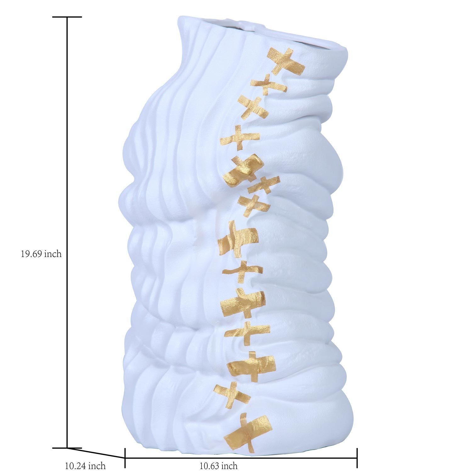 You may add a touch of modern elegance to your home decor with this lovely 20" tall ceramic vase. The unusual gold textured design will make any space in your home feel more wealthy and refined. This vase can be used on any surface, including the floor, a shelf, or table. Due to the durability and ease of cleaning of ceramic, it will be a long-lasting addition to your home's decor.