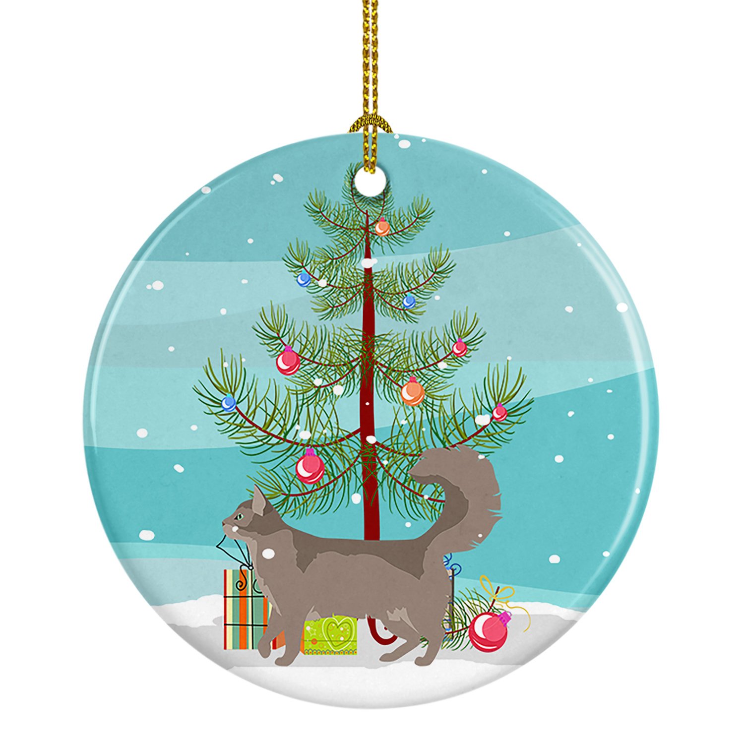 Ceramic Ornament featuring breed specific Somali artwork. Celebrate Christmas with this Christmas Ornament. This Ceramic Ornament is from Caroline's Treasures collection Merry Christmas Tree. Add a touch of personalized charm to your Christmas tree this holiday season with our Ceramic Ornament. Measuring 2.8125 inches in diameter, this round porcelain ornament beautifully reflects your festive lights, enhancing your holiday decor. The gloss surface sets off the vibrant, full-color artwork contributed by one of our talented artists, bringing a pop of color and joy to your tree. This Ceramic Ornament doesn't stop at being merely decorative. The white back is designed for personalization. Write a heartfelt message, mark a special year, or inscribe a date with a paint pen or a permanent marker to create a treasured memento. Please ensure you allow any personalization to dry thoroughly before handling to maintain the pristine finish. Included with the ornament is a delicate gold cord for easy hanging. Made in the USA, this Ceramic Ornament makes an exceptional gift for a pet sitter, teacher, family member, or anyone you wish to share a little Christmas magic with. With its blend of style, charm, and personal touch, it's a meaningful addition to any Christmas tree. This Ornament is from Caroline's Treasures Cats category of products.