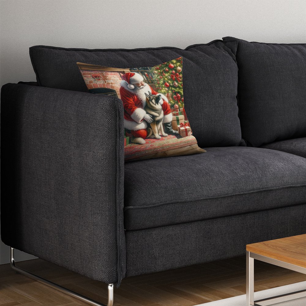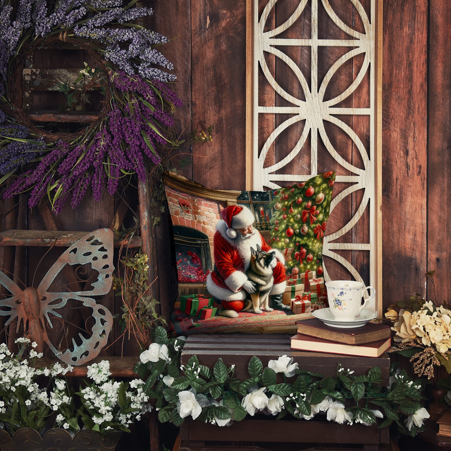 Home > Norwegian Elkhound and Santa Claus Throw Pillow Machine Washable, Indoor Outdoor Decorative Pillow for Couch, Bed or Patio, 14Hx14W