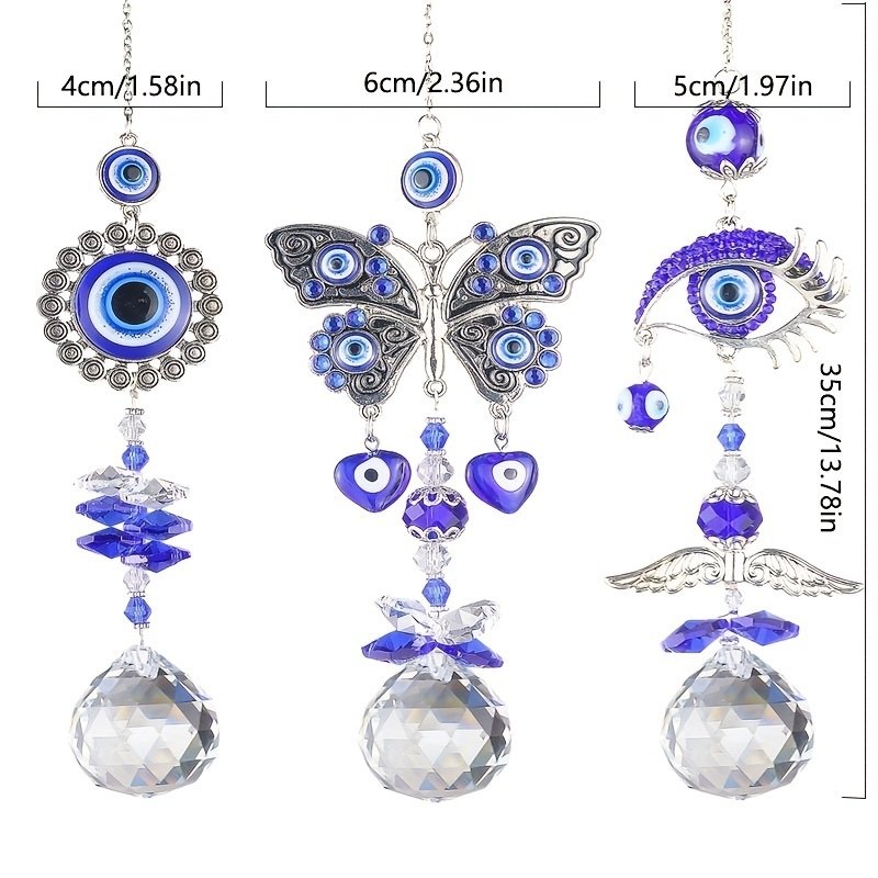 1pc Crystal Sun Catchers; Blue Butterfly Evil Eye Suncatcher Indoor Window With Prism Ball; Sunlight Rainbow Maker Good Luck Hanging Crystals Ornament