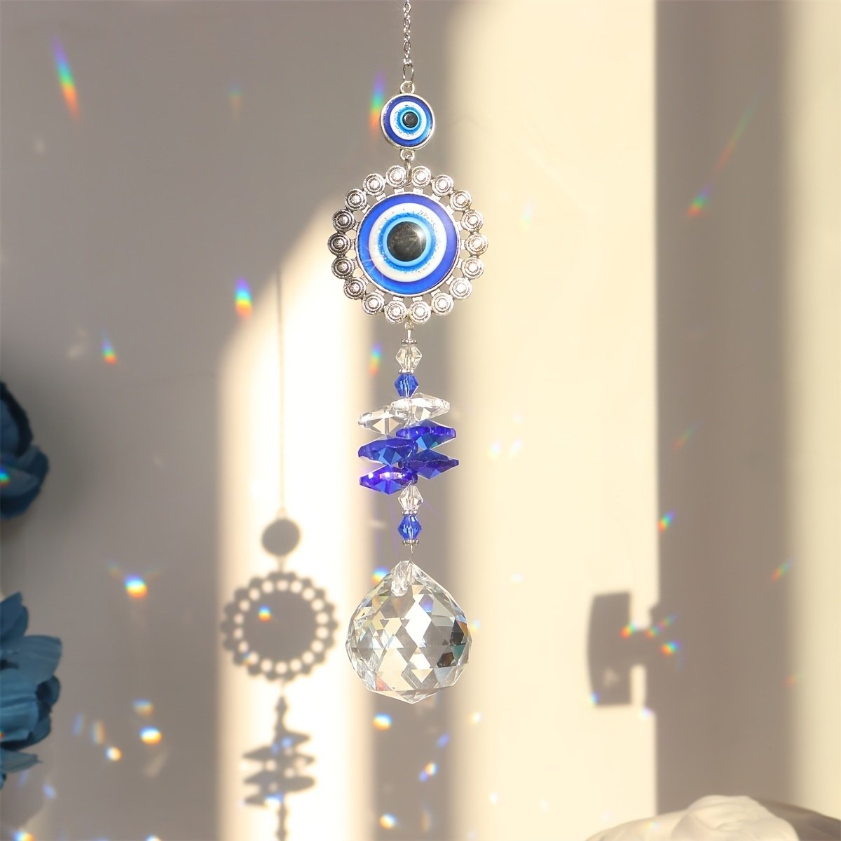 Home > 1pc Crystal Sun Catchers; Blue Butterfly Evil Eye Suncatcher Indoor Window With Prism Ball; Sunlight Rainbow Maker Good Luck Hanging Crystals Ornament