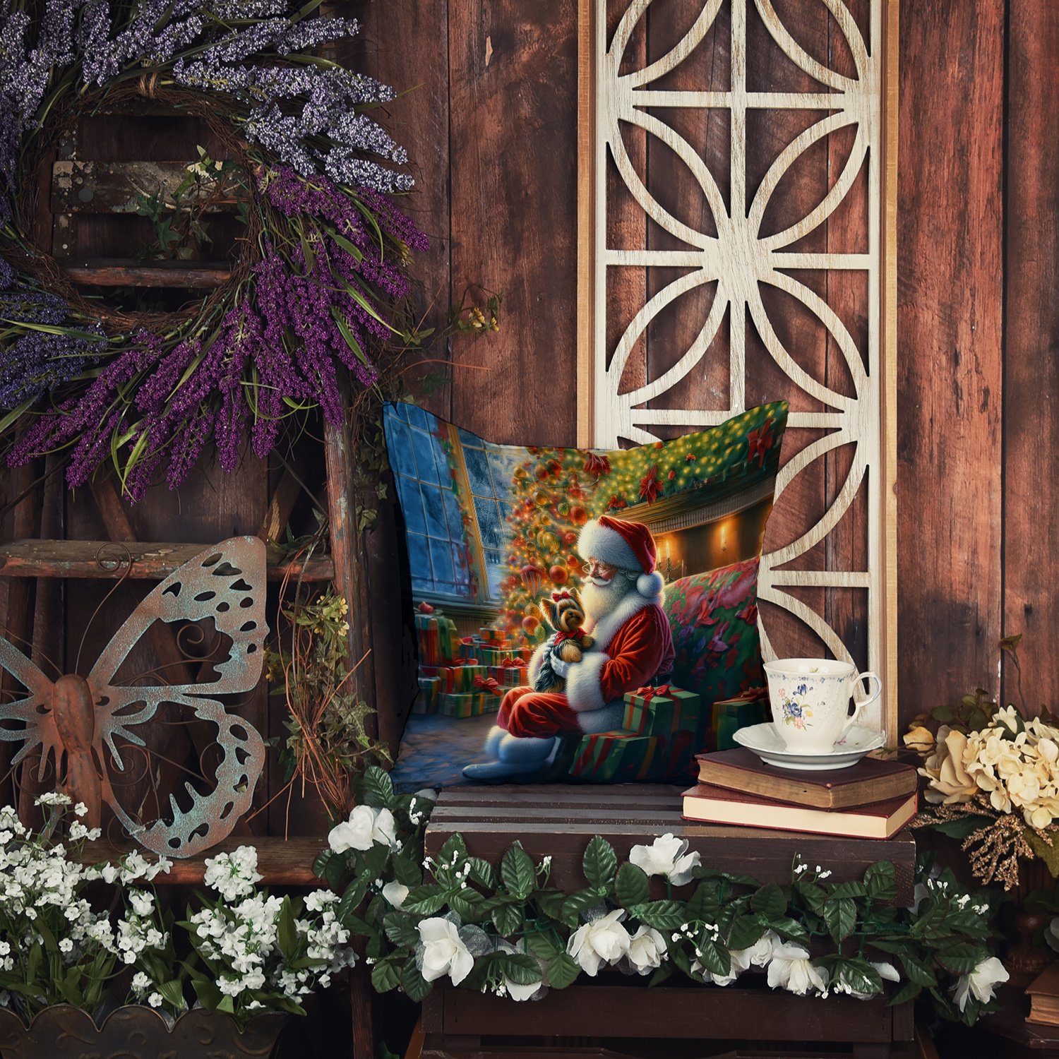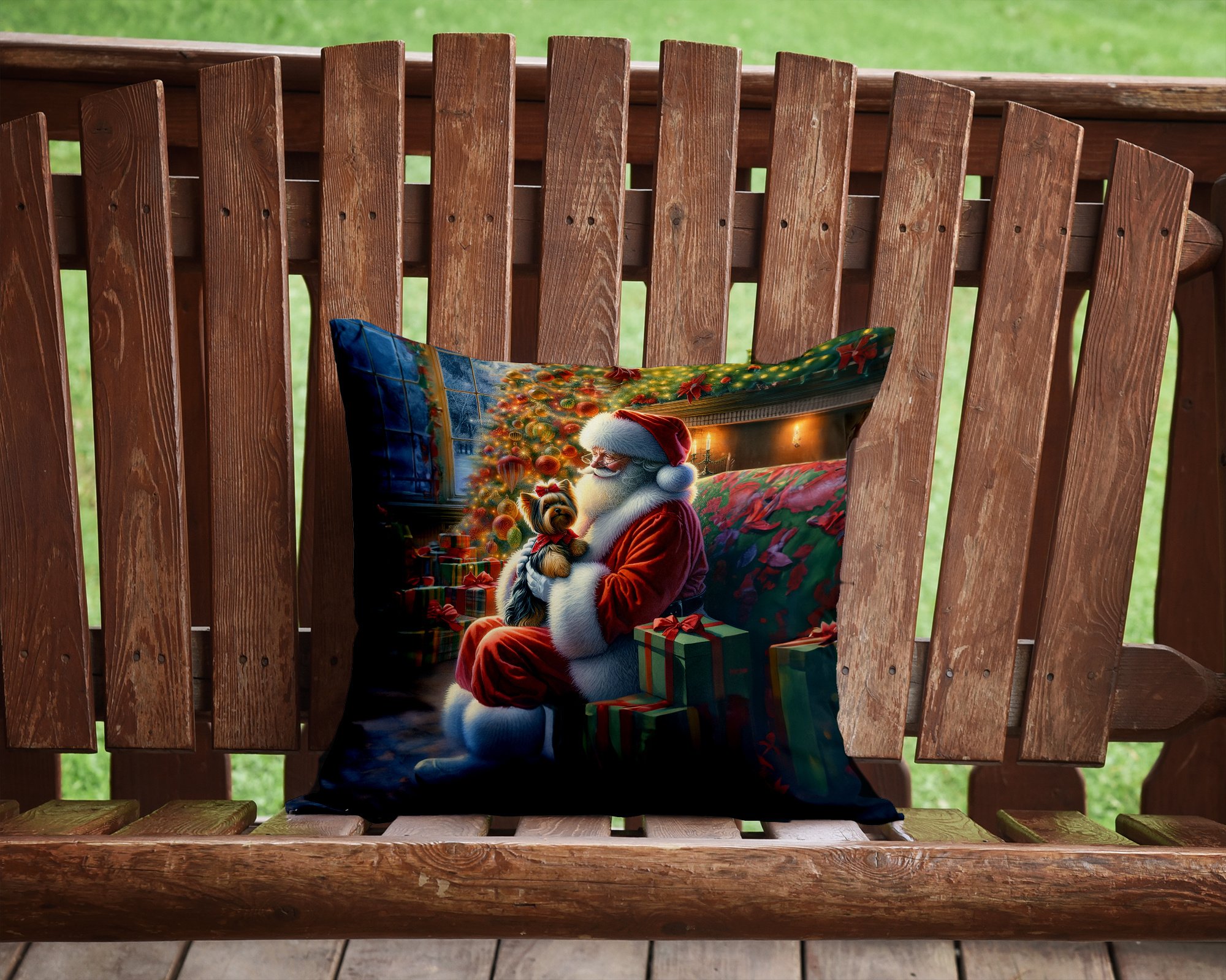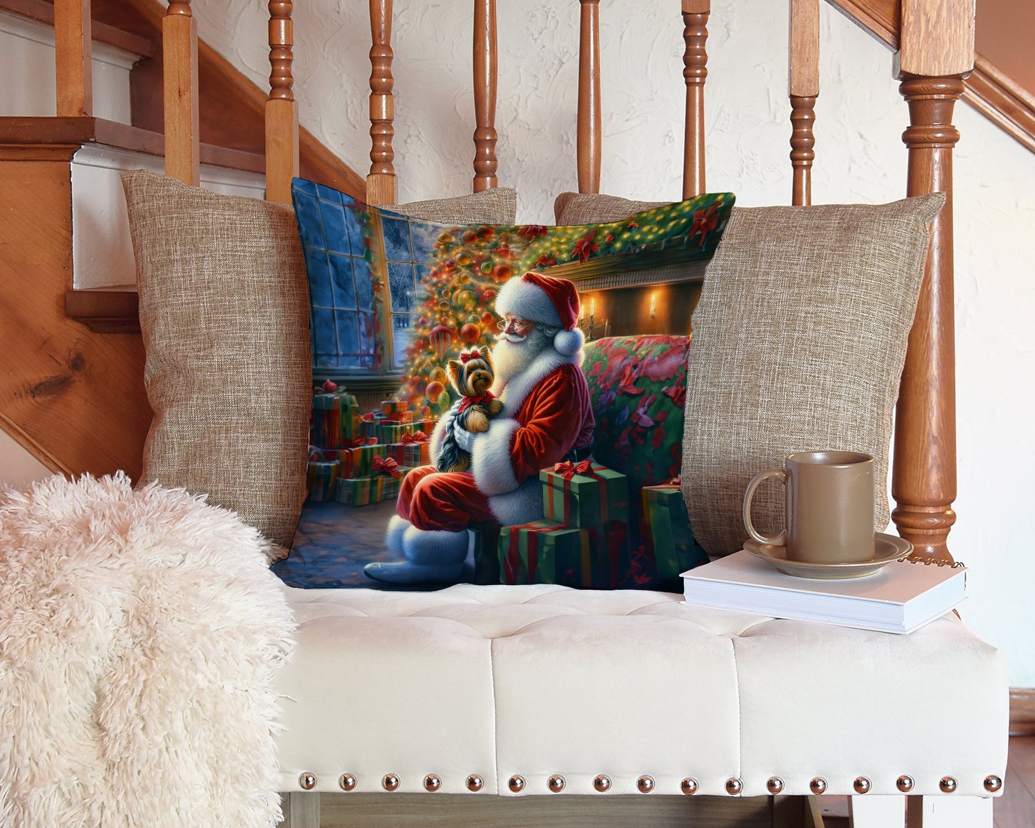 Home > Yorkshire Terrier Yorkie and Santa Claus Throw Pillow Machine Washable, Indoor Outdoor Decorative Pillow for Couch, Bed or Patio, 14Hx14W
