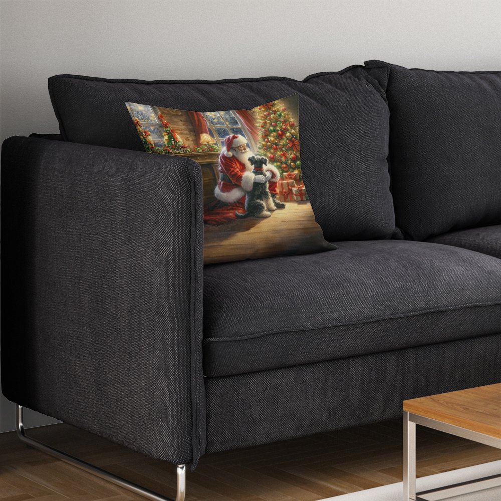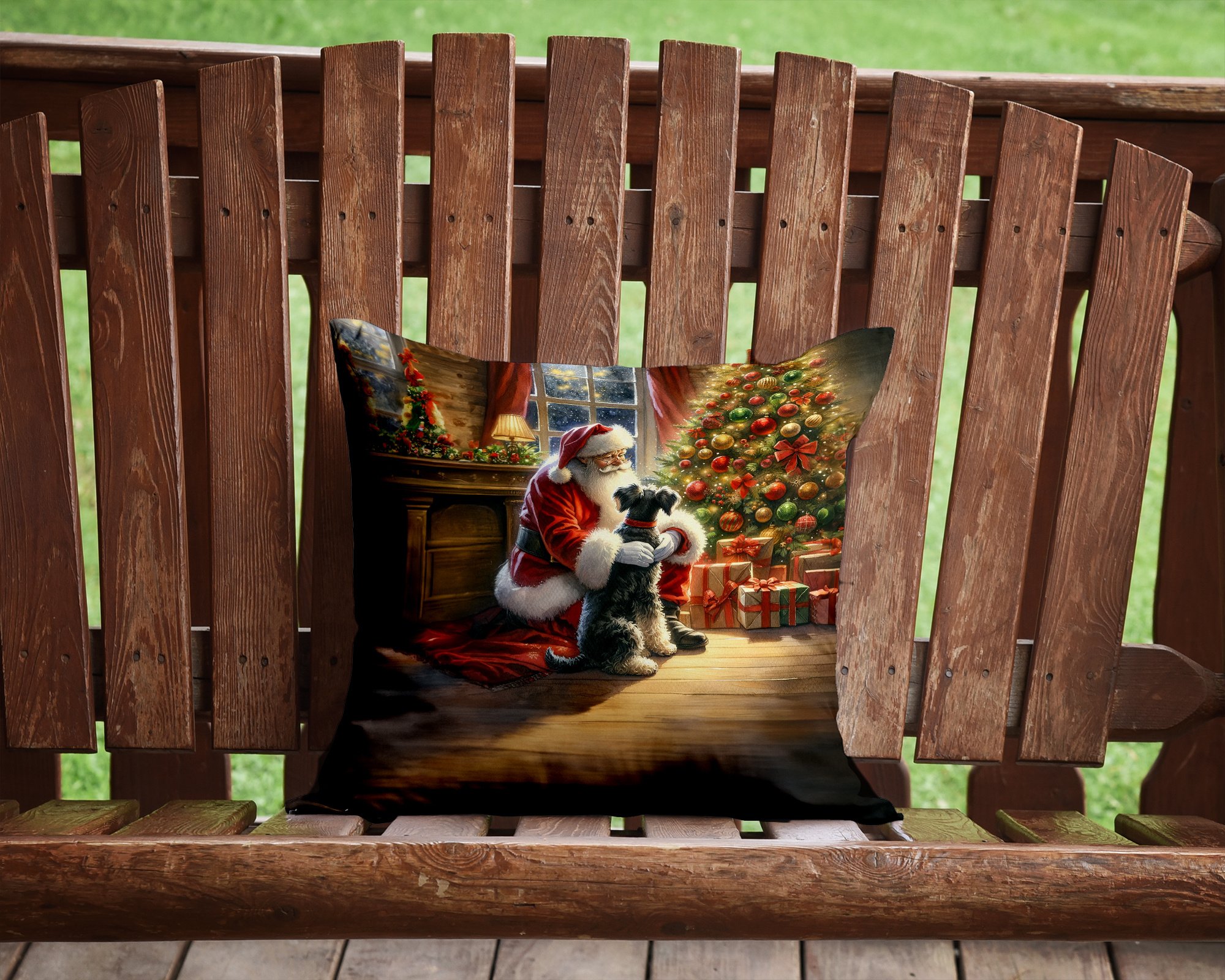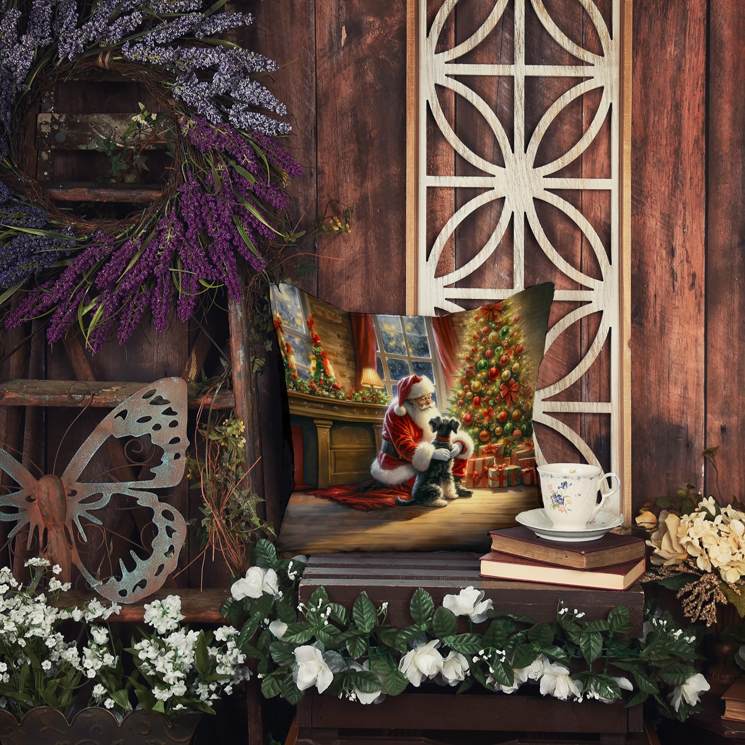 Schnauzer and Santa Claus Throw Pillow Machine Washable, Indoor Outdoor Decorative Pillow for Couch, Bed or Patio, 14Hx14W