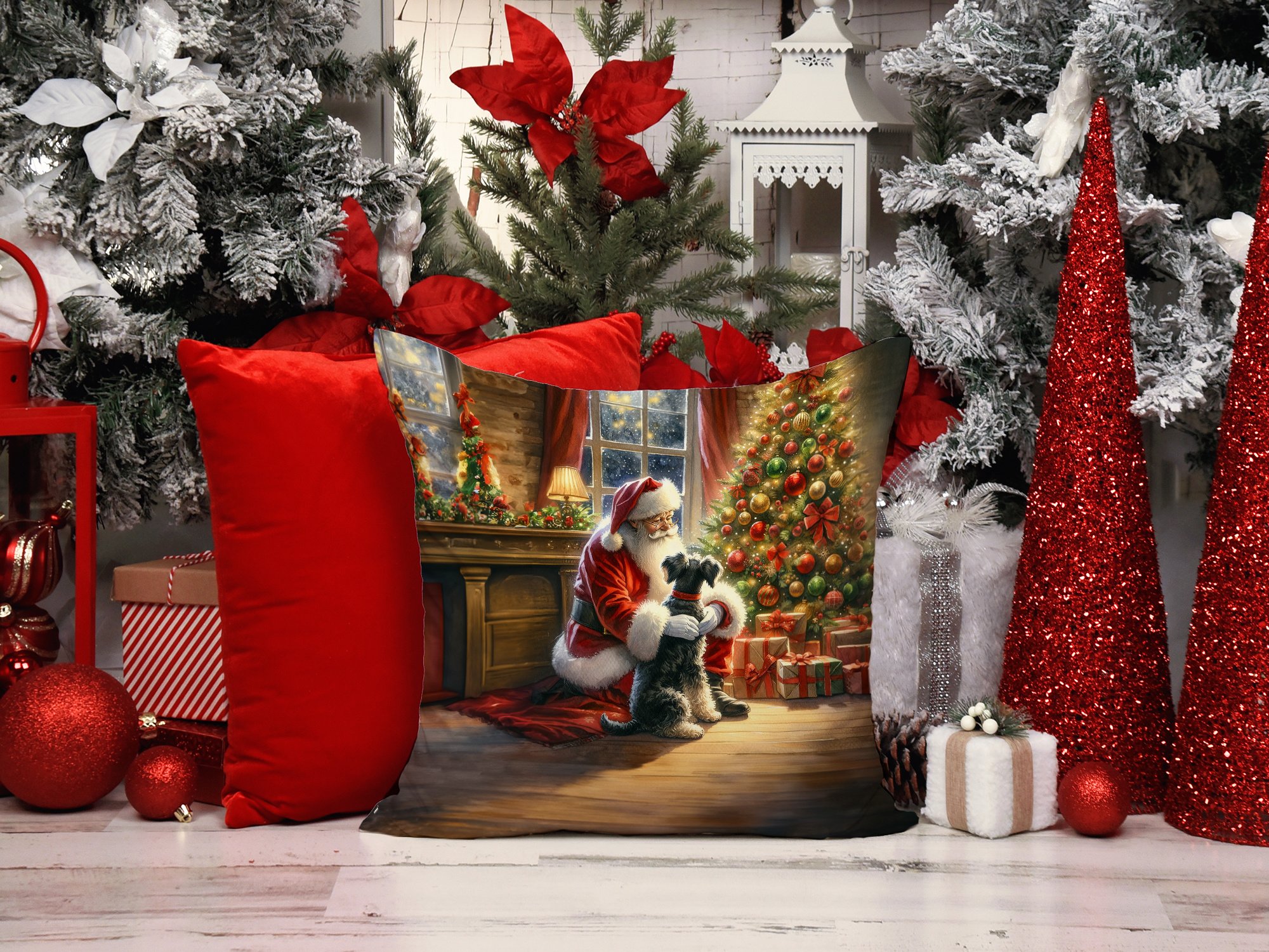 Home > Schnauzer and Santa Claus Throw Pillow Machine Washable, Indoor Outdoor Decorative Pillow for Couch, Bed or Patio, 14Hx14W