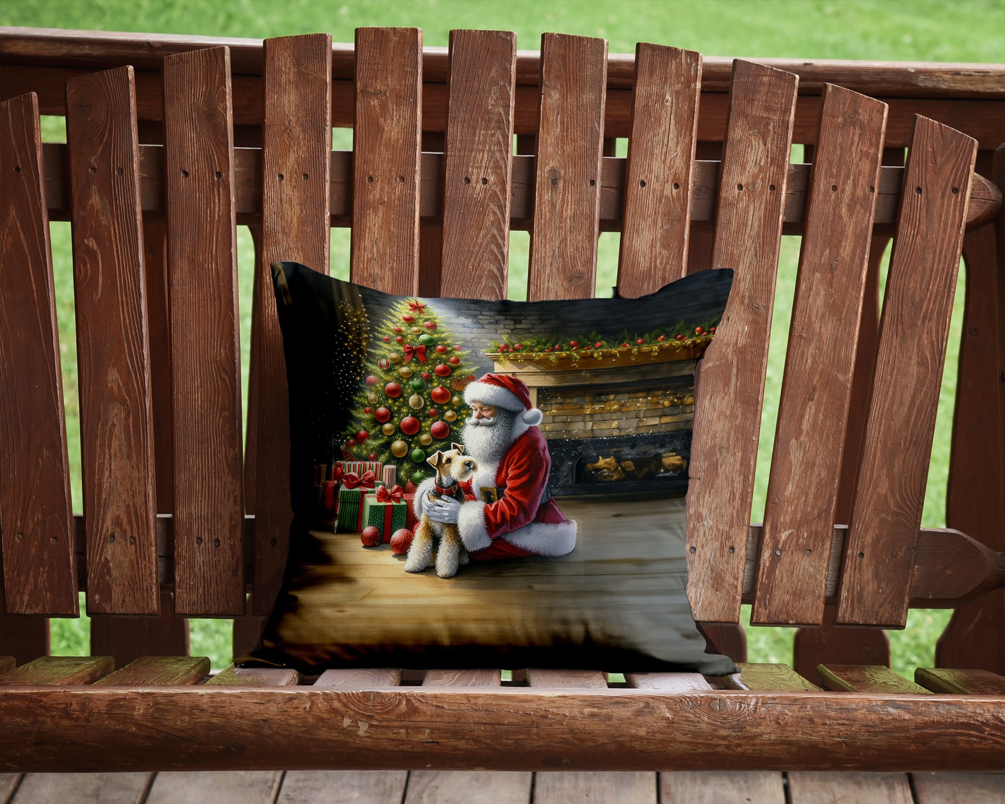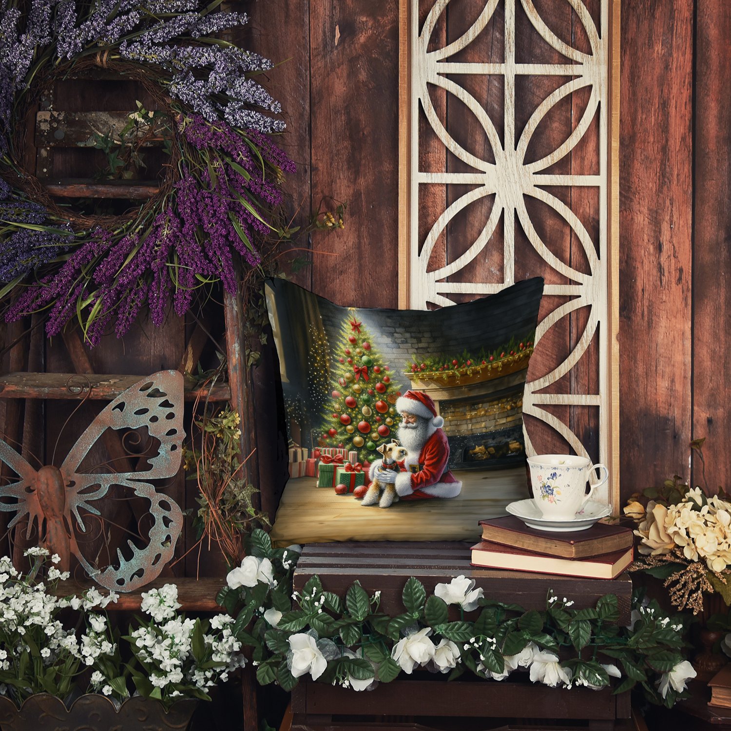 Fox Terrier and Santa Claus Throw Pillow Machine Washable, Indoor Outdoor Decorative Pillow for Couch, Bed or Patio, 14Hx14W