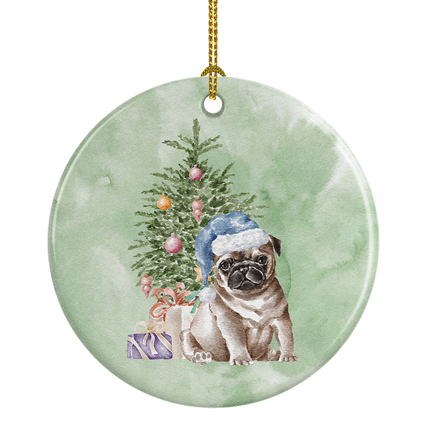Ceramic Ornament featuring breed specific Pug artwork. Celebrate Christmas with this Christmas Ornament. This Ceramic Ornament is from Caroline's Treasures collection Christmas Presents and Tree. Add a touch of personalized charm to your Christmas tree this holiday season with our Ceramic Ornament. Measuring 2.8125 inches in diameter, this round porcelain ornament beautifully reflects your festive lights, enhancing your holiday decor. The gloss surface sets off the vibrant, full-color artwork contributed by one of our talented artists, bringing a pop of color and joy to your tree. This Ceramic Ornament doesn't stop at being merely decorative. The white back is designed for personalization. Write a heartfelt message, mark a special year, or inscribe a date with a paint pen or a permanent marker to create a treasured memento. Please ensure you allow any personalization to dry thoroughly before handling to maintain the pristine finish. Included with the ornament is a delicate gold cord for easy hanging. Made in the USA, this Ceramic Ornament makes an exceptional gift for a pet sitter, teacher, family member, or anyone you wish to share a little Christmas magic with. With its blend of style, charm, and personal touch, it's a meaningful addition to any Christmas tree. This Ornament is from Caroline's Treasures Dogs category of products.