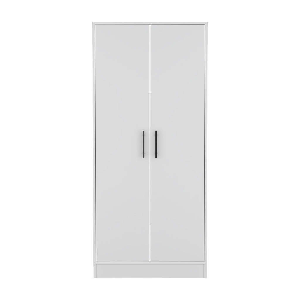 Introducing the 2-piece bedroom set, featuring an armoire and a dresser with drawers to elevate both flair and storage in your personal space, designed with a white wood finish embodying stylish utility. Enhance your bedroom's design while maintaining organization for your necessities with the 2-door armoire, equipped with an upper storage shelf, hanging rod, and roomy lower drawer, while unveiling the 6 drawer double dresser, a statement piece combining ample storage with a sleek design, featuring six generously proportioned drawers and an expansive top ideal for showcasing decor and essentials, adding a personalized touch to your space.