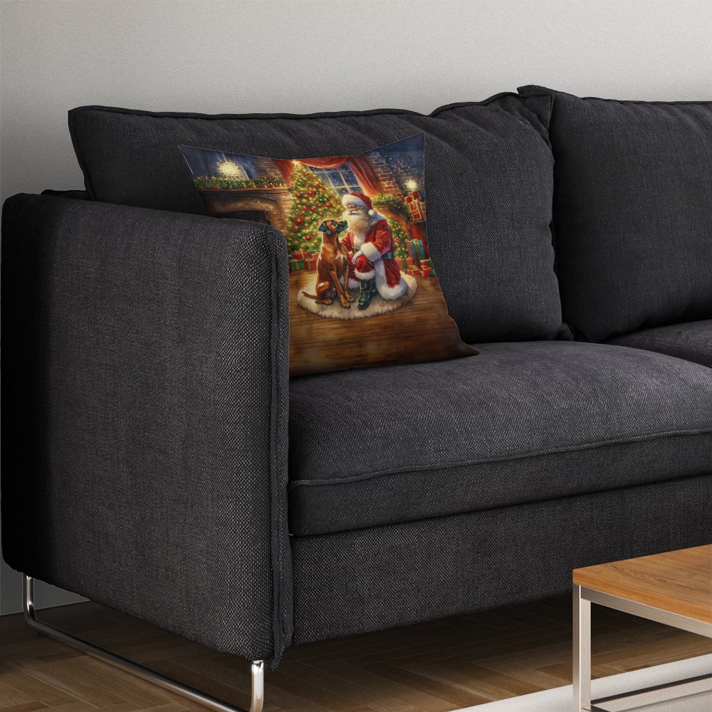 Rhodesian Ridgeback and Santa Claus Throw Pillow Machine Washable, Indoor Outdoor Decorative Pillow for Couch, Bed or Patio, 14Hx14W