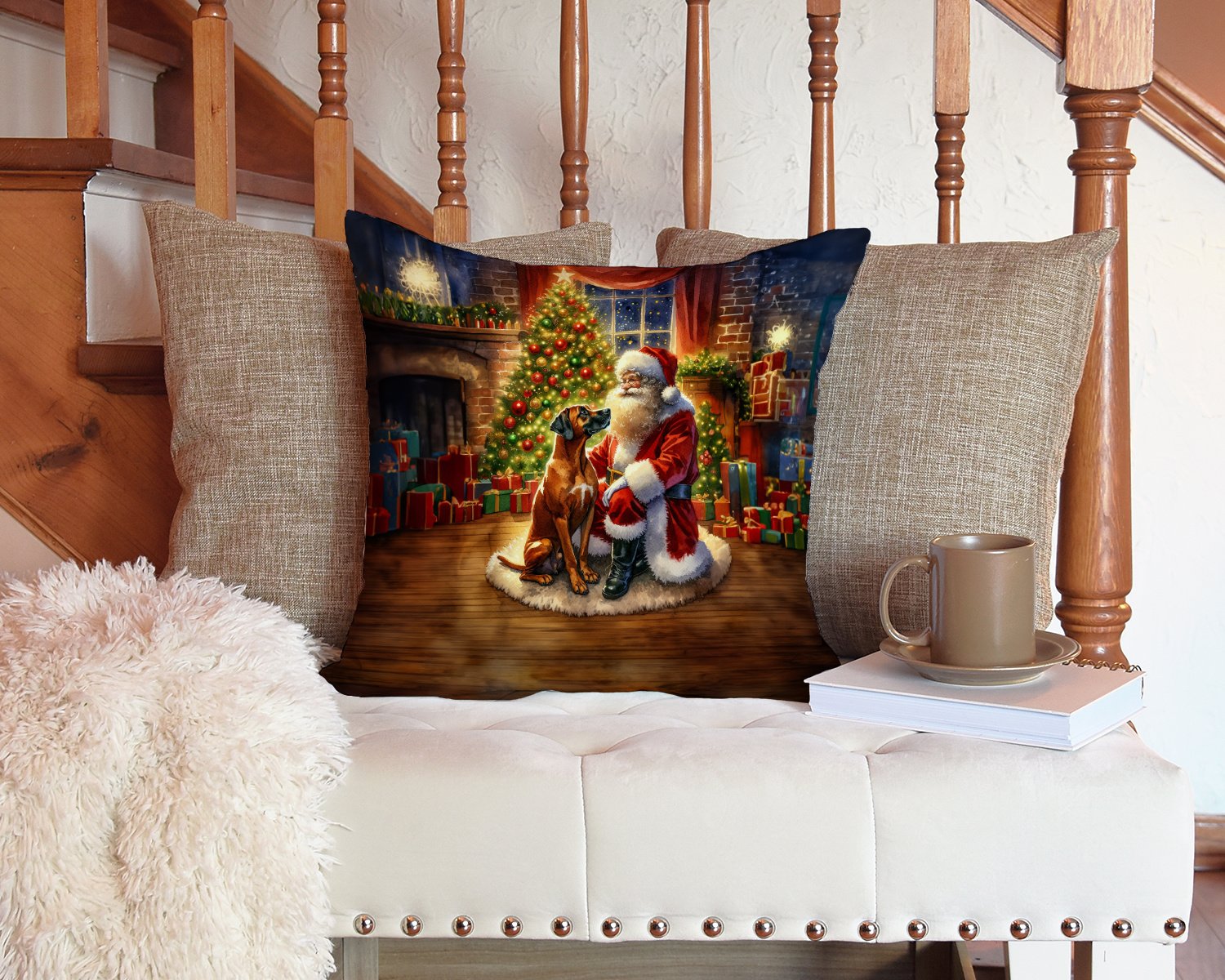 Home > Rhodesian Ridgeback and Santa Claus Throw Pillow Machine Washable, Indoor Outdoor Decorative Pillow for Couch, Bed or Patio, 14Hx14W