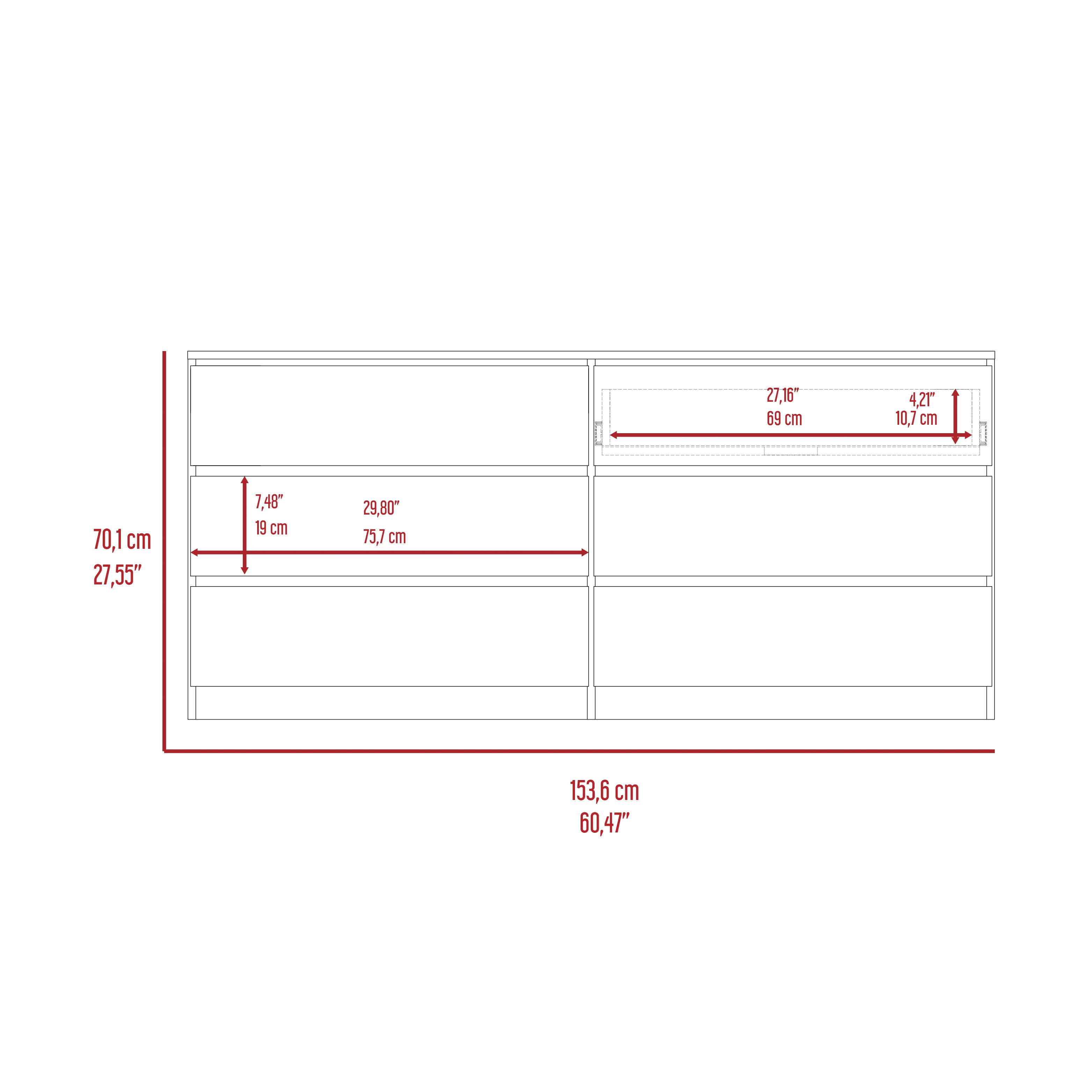 Dresser offers six spacious drawers (29.80"H X 7.48"H) for ample storage capacity