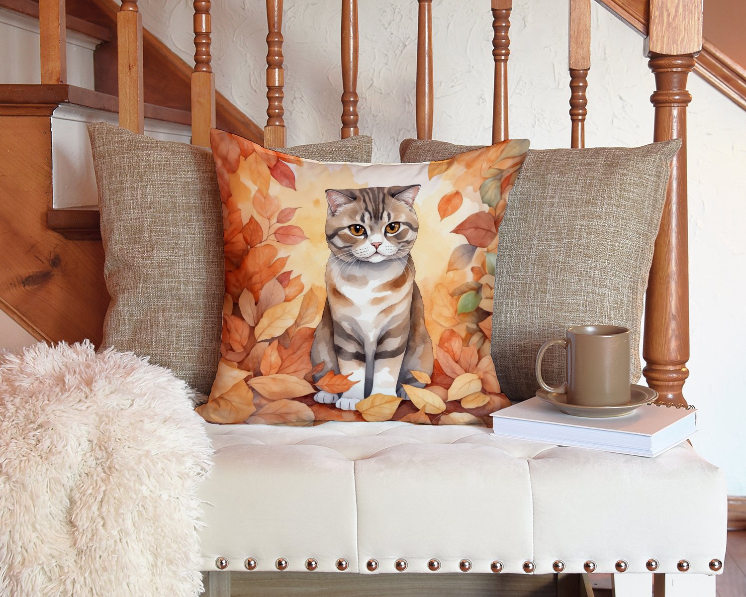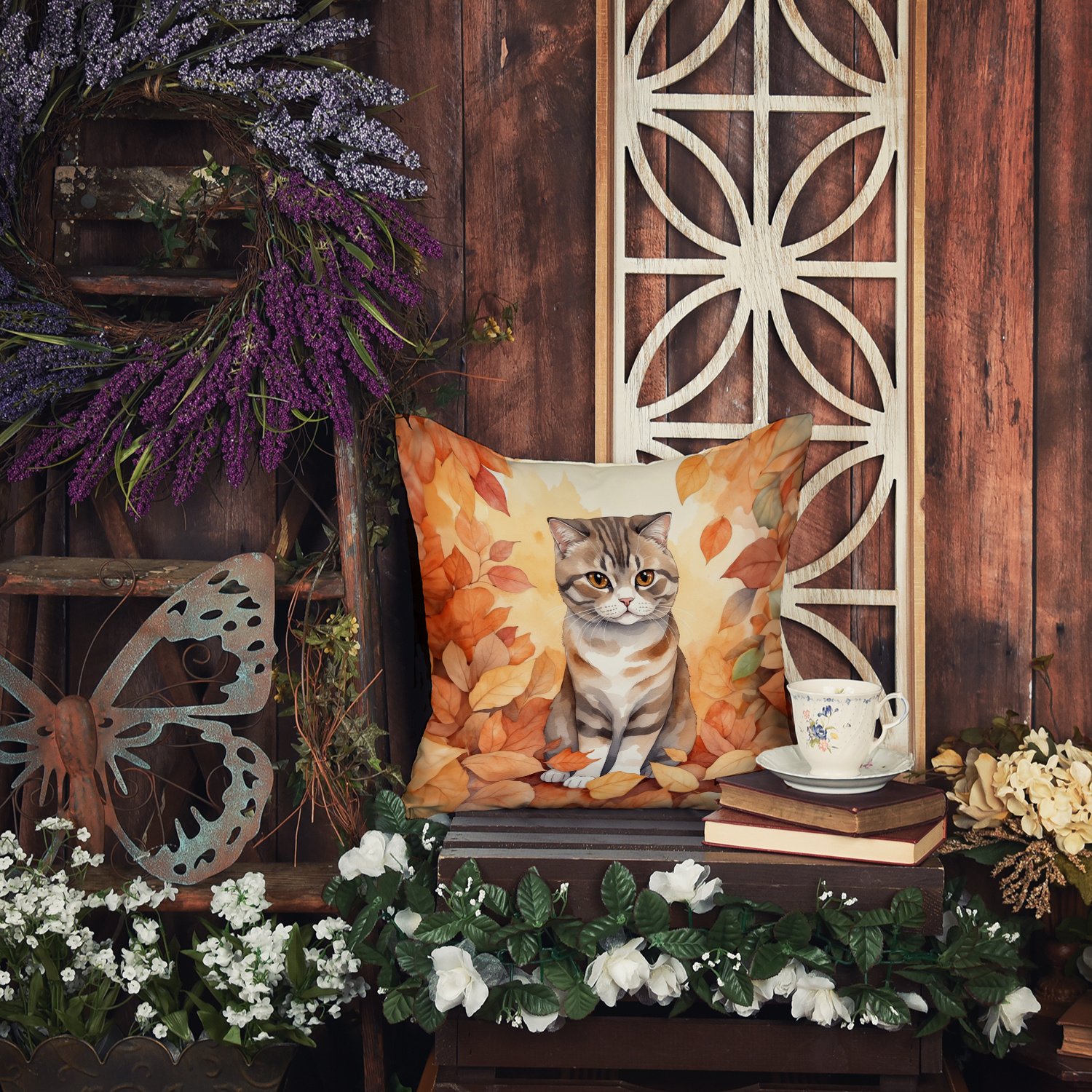 Home > Scottish Fold Cat in Fall Leaves Throw Pillow Machine Washable, Indoor Outdoor Decorative Pillow for Couch, Bed or Patio, 14Hx14W