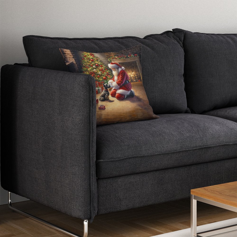 Scottish Terrier and Santa Claus Throw Pillow Machine Washable, Indoor Outdoor Decorative Pillow for Couch, Bed or Patio, 14Hx14W