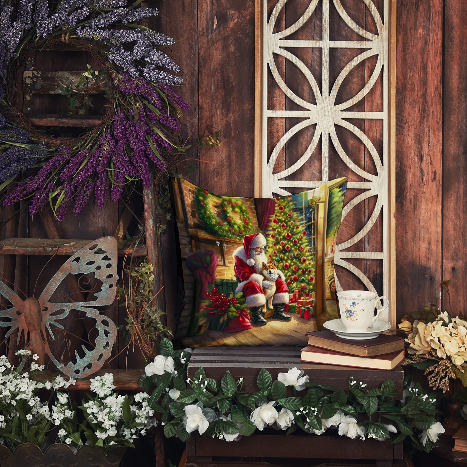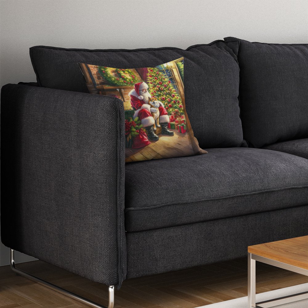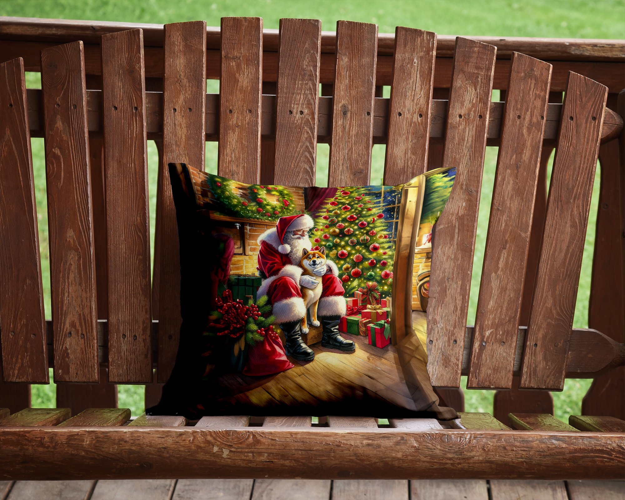 Shiba Inu and Santa Claus Throw Pillow Machine Washable, Indoor Outdoor Decorative Pillow for Couch, Bed or Patio, 14Hx14W
