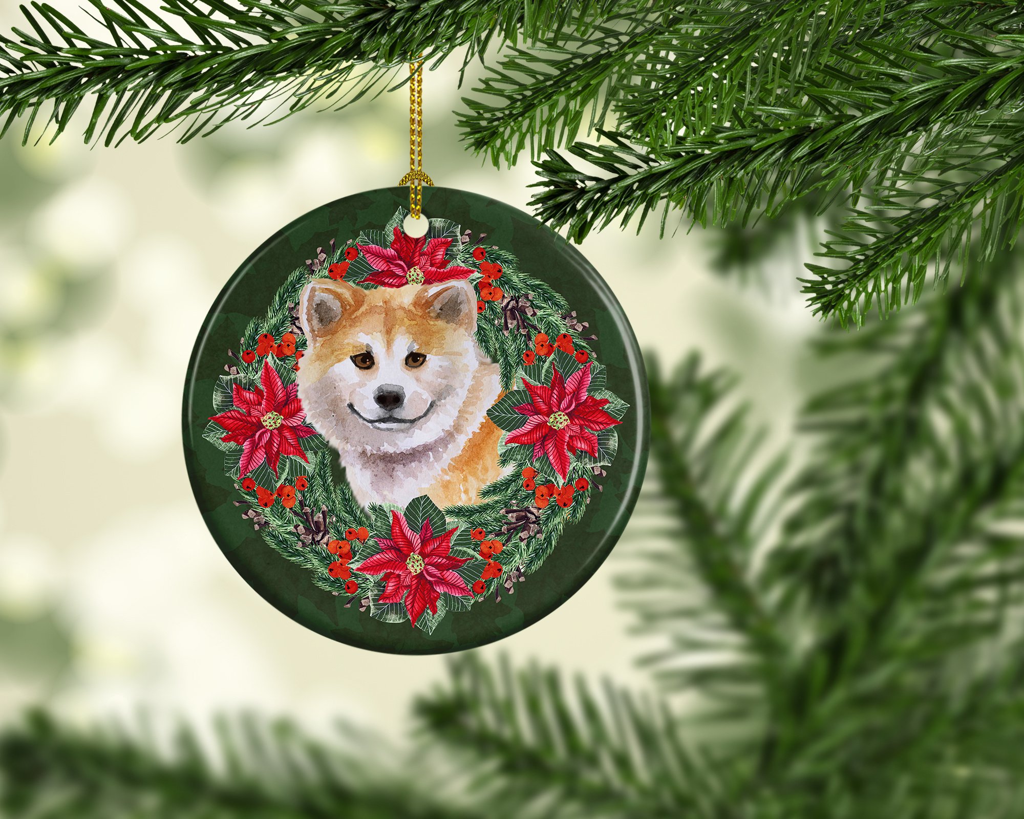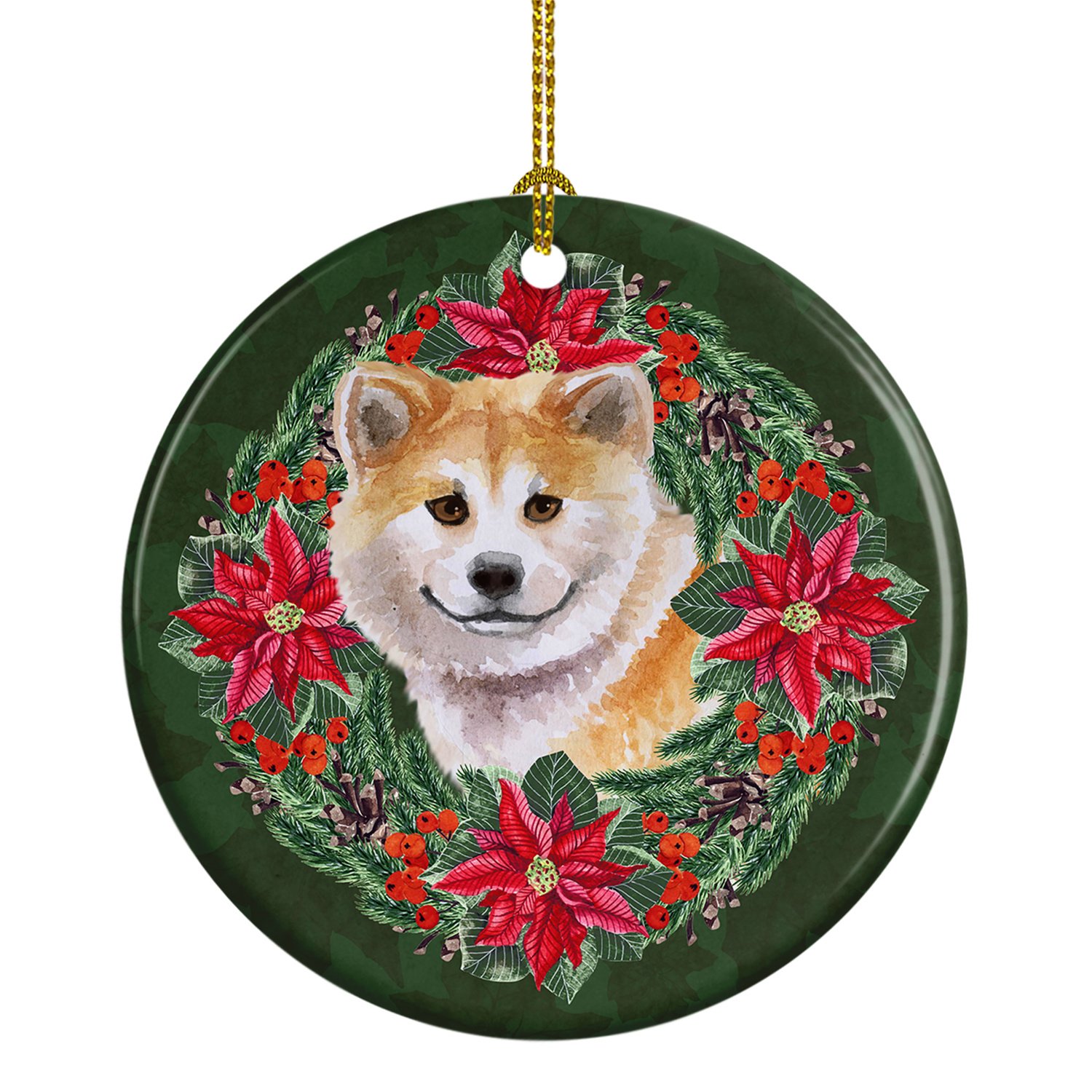 Ceramic Ornament featuring breed specific Shiba Inu artwork. Celebrate Christmas with this Christmas Ornament. This Ceramic Ornament is from Caroline's Treasures collection Christmas Poinsetta Wreath. Add a touch of personalized charm to your Christmas tree this holiday season with our Ceramic Ornament. Measuring 2.8125 inches in diameter, this round porcelain ornament beautifully reflects your festive lights, enhancing your holiday decor. The gloss surface sets off the vibrant, full-color artwork contributed by one of our talented artists, bringing a pop of color and joy to your tree. This Ceramic Ornament doesn't stop at being merely decorative. The white back is designed for personalization. Write a heartfelt message, mark a special year, or inscribe a date with a paint pen or a permanent marker to create a treasured memento. Please ensure you allow any personalization to dry thoroughly before handling to maintain the pristine finish. Included with the ornament is a delicate gold cord for easy hanging. Made in the USA, this Ceramic Ornament makes an exceptional gift for a pet sitter, teacher, family member, or anyone you wish to share a little Christmas magic with. With its blend of style, charm, and personal touch, it's a meaningful addition to any Christmas tree. This Ornament is from Caroline's Treasures Dogs category of products.