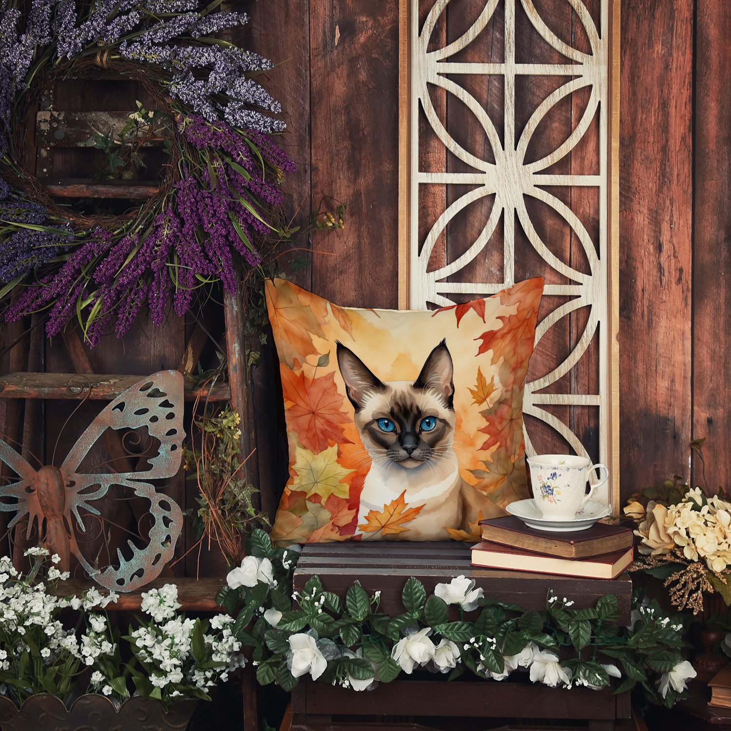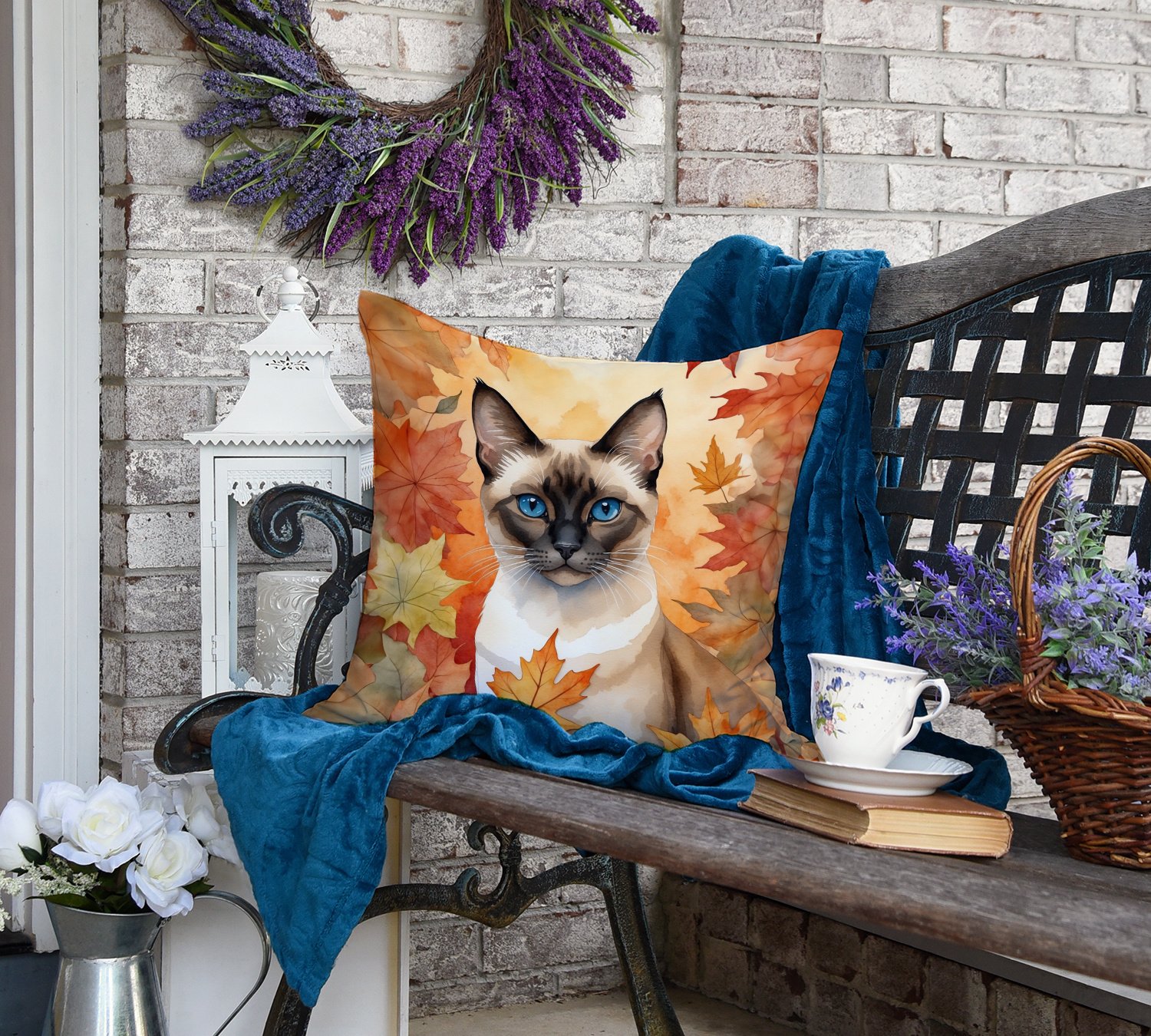Home > Siamese Cat in Fall Leaves Throw Pillow Machine Washable, Indoor Outdoor Decorative Pillow for Couch, Bed or Patio, 18Hx18W