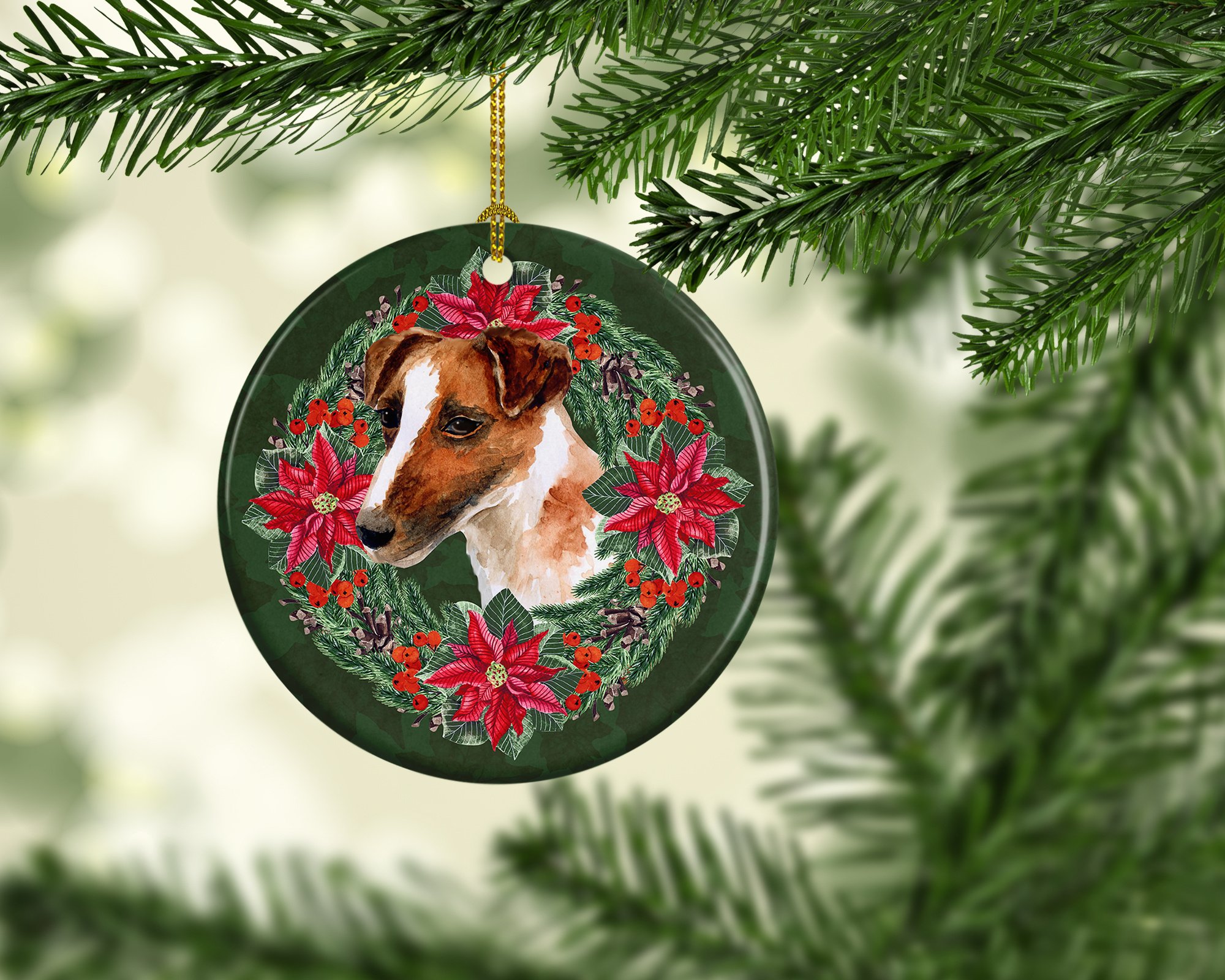 Home > Smooth Fox Terrier Poinsetta Wreath Ceramic Ornament Christmas Tree Hanging Decorations for Home Christmas Holiday, Party, Gift, 3 in, Multicolor