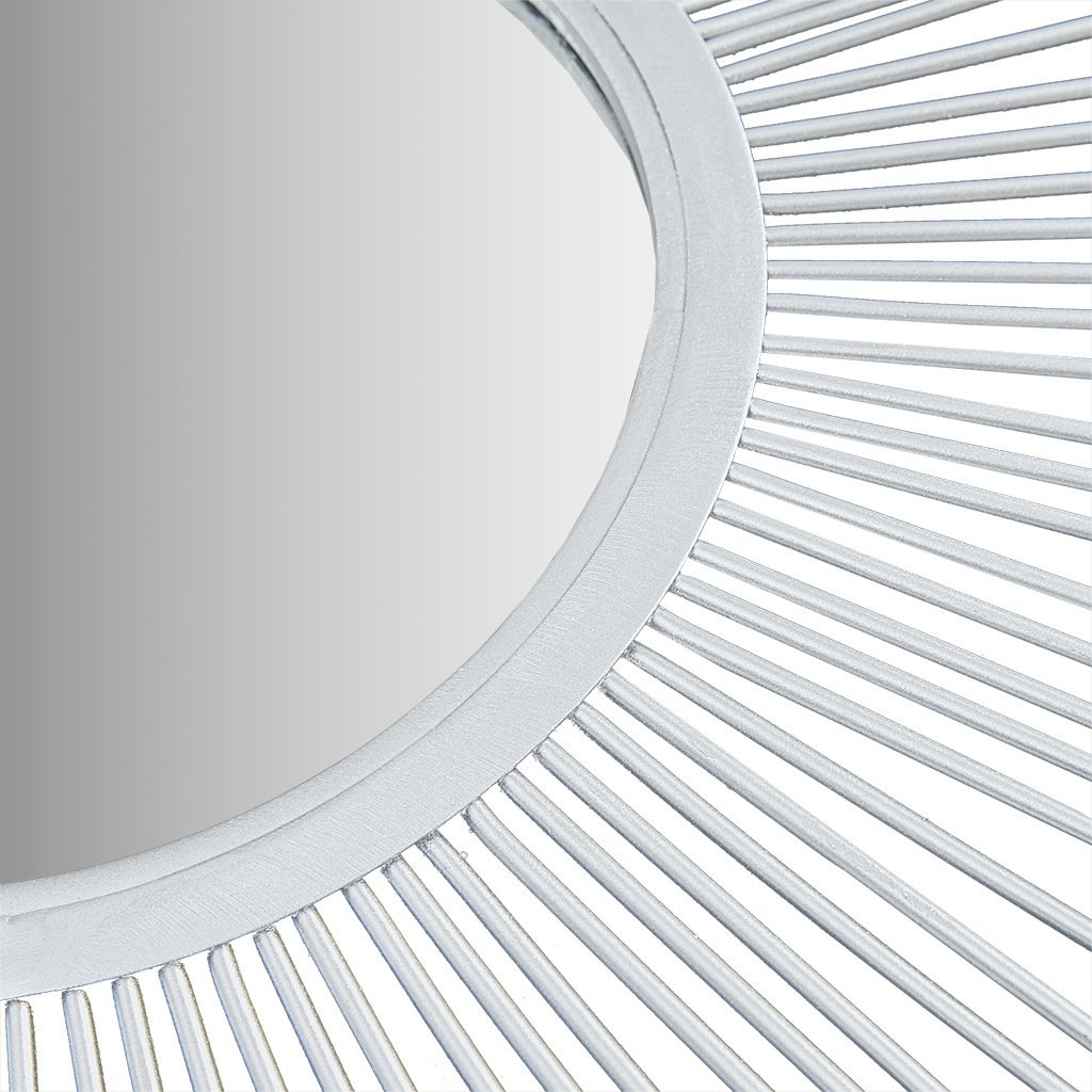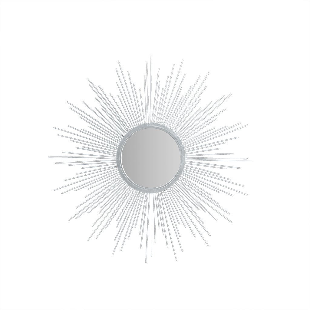 Add a modern and glamorous touch to your space with our Madison Park Sunburst Mirror. A stylized iron frame is featured in a sphere design creating beautiful dimension, while the silver foil adds a rich sheen and luster. The keyhole hanger feature on the reverse of the mirror allows for effortless hanging on your wall. Incorporate this wall mirror into your decor, for the perfect combination of chic luxe and metallic flair. Mirror is sold as a single piece and does not come as a set; for the complete look purchase other size for a stylized cluster or hang individually as a focus piece. The larger piece measures 29.5" with 8"D mirror size, while the smaller piece measures 14.5" with 3.875"D mirror size. Handle with care; Gently wipe clean with a damp cloth