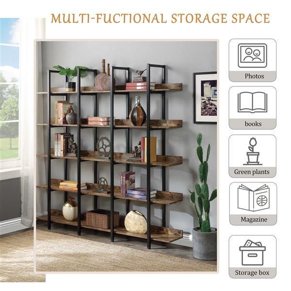 [VIDEO] 5 Tier Bookcase Home Office Open Bookshelf, Vintage Industrial Style Shelf with Metal Frame, MDF Board