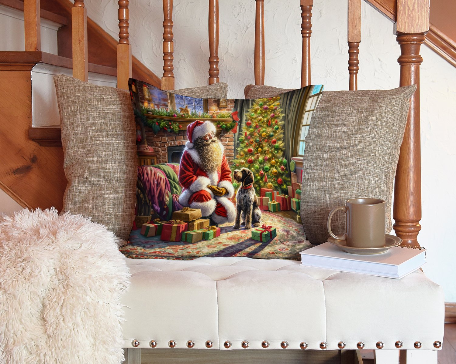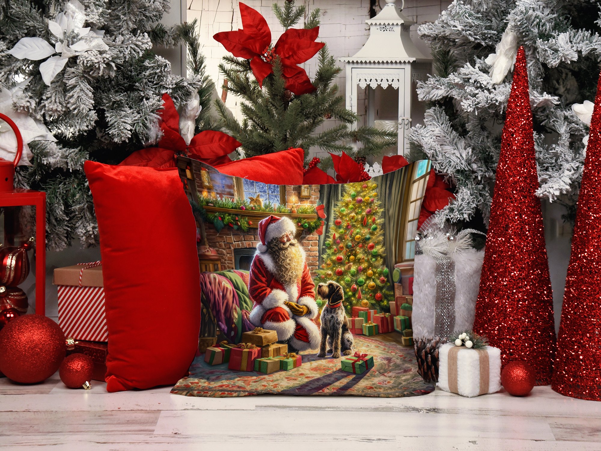 Home > Wirehaired Pointing Griffon and Santa Claus Throw Pillow Machine Washable, Indoor Outdoor Decorative Pillow for Couch, Bed or Patio, 14Hx14W