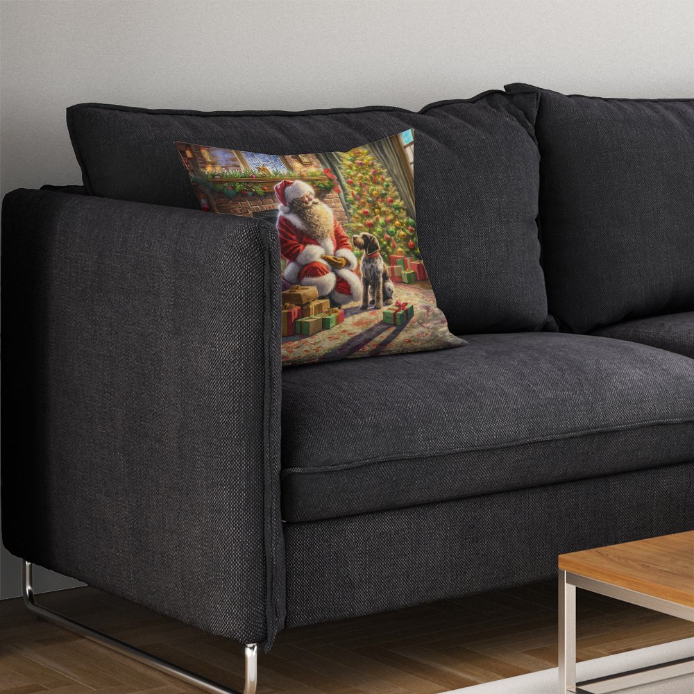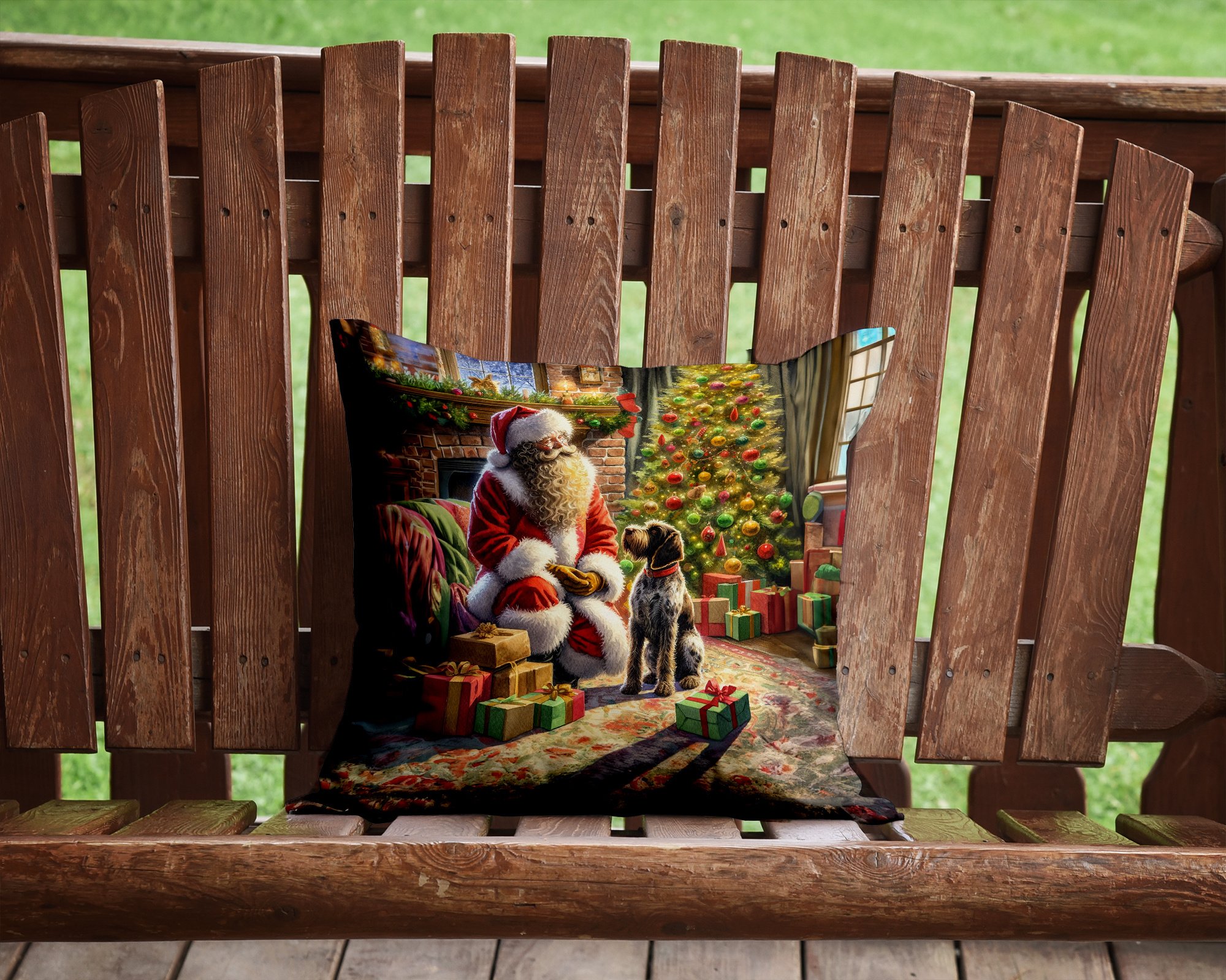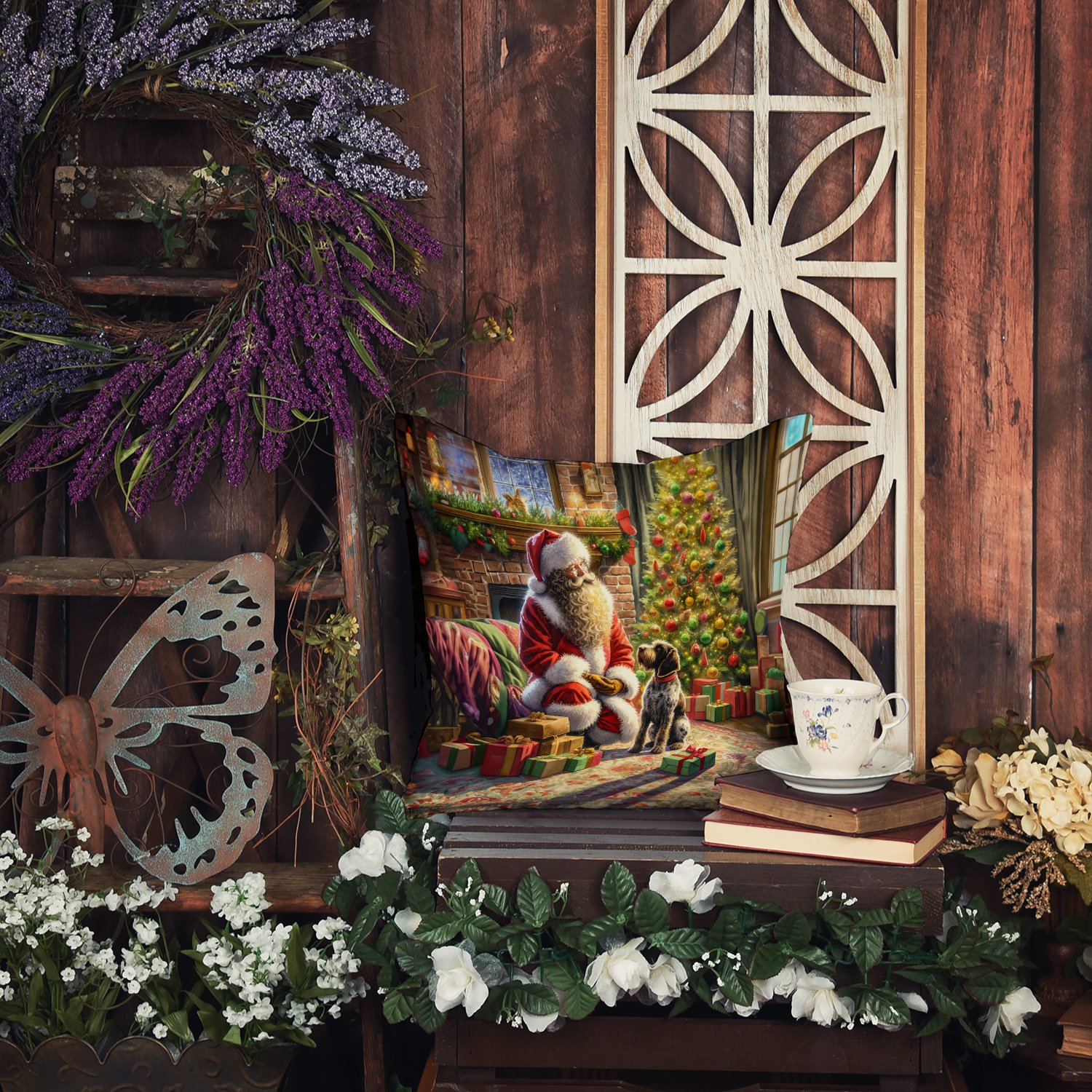 Wirehaired Pointing Griffon and Santa Claus Throw Pillow Machine Washable, Indoor Outdoor Decorative Pillow for Couch, Bed or Patio, 14Hx14W