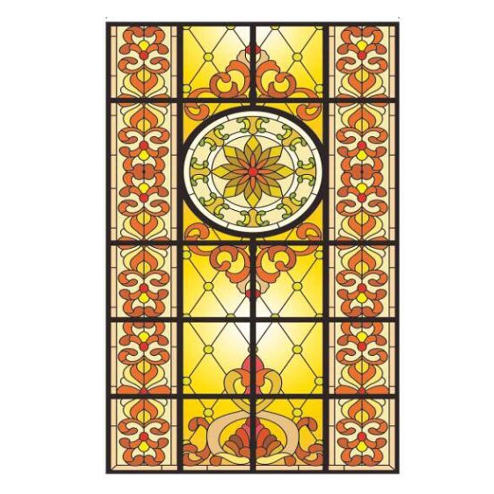 Yellow Privacy Static Window Film European Style Stained Glass Window Film Church No Glue Frosted Window Film,15x47 inch Yellow Privacy Static Window Film European Style Stained Glass Window Film Church No Glue Frosted Window Film,15x47 inch