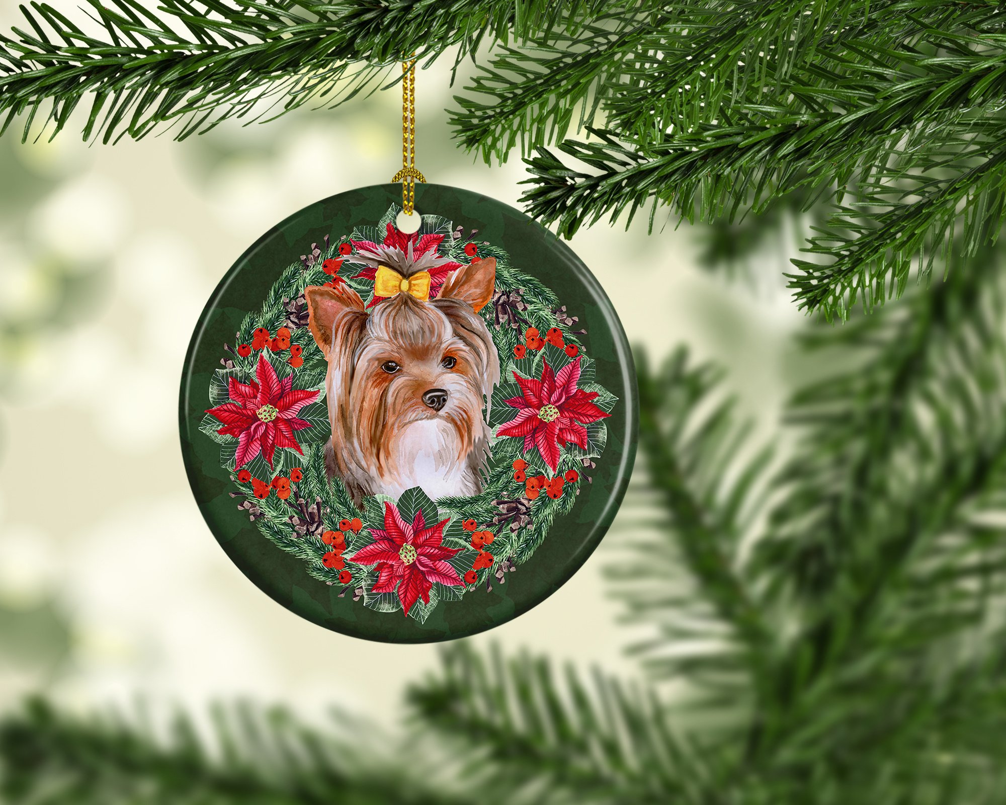 Home > Yorkshire Terrier #2 Poinsetta Wreath Ceramic Ornament Christmas Tree Hanging Decorations for Home Christmas Holiday, Party, Gift, 3 in, Multicolor